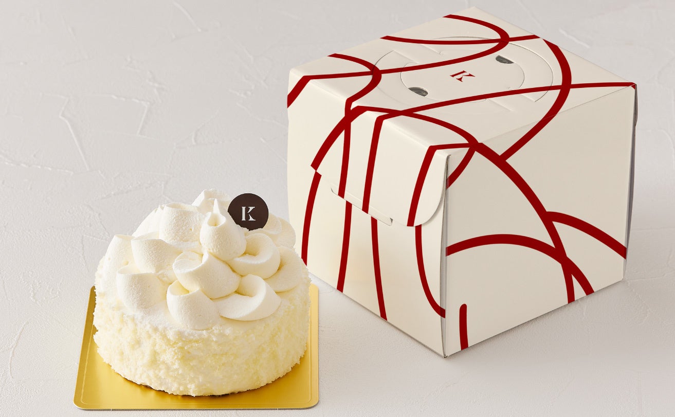 ひらひらと風に揺れるリボンがケーキに舞い降りたようなデコレーションは、クリームをたっぷりと絞る高さのあるデザインです。パティシエの繊細な絞りの技術で一つひとつ作り上げています。箱を開けた瞬間のトキメキも一緒にお届けします。