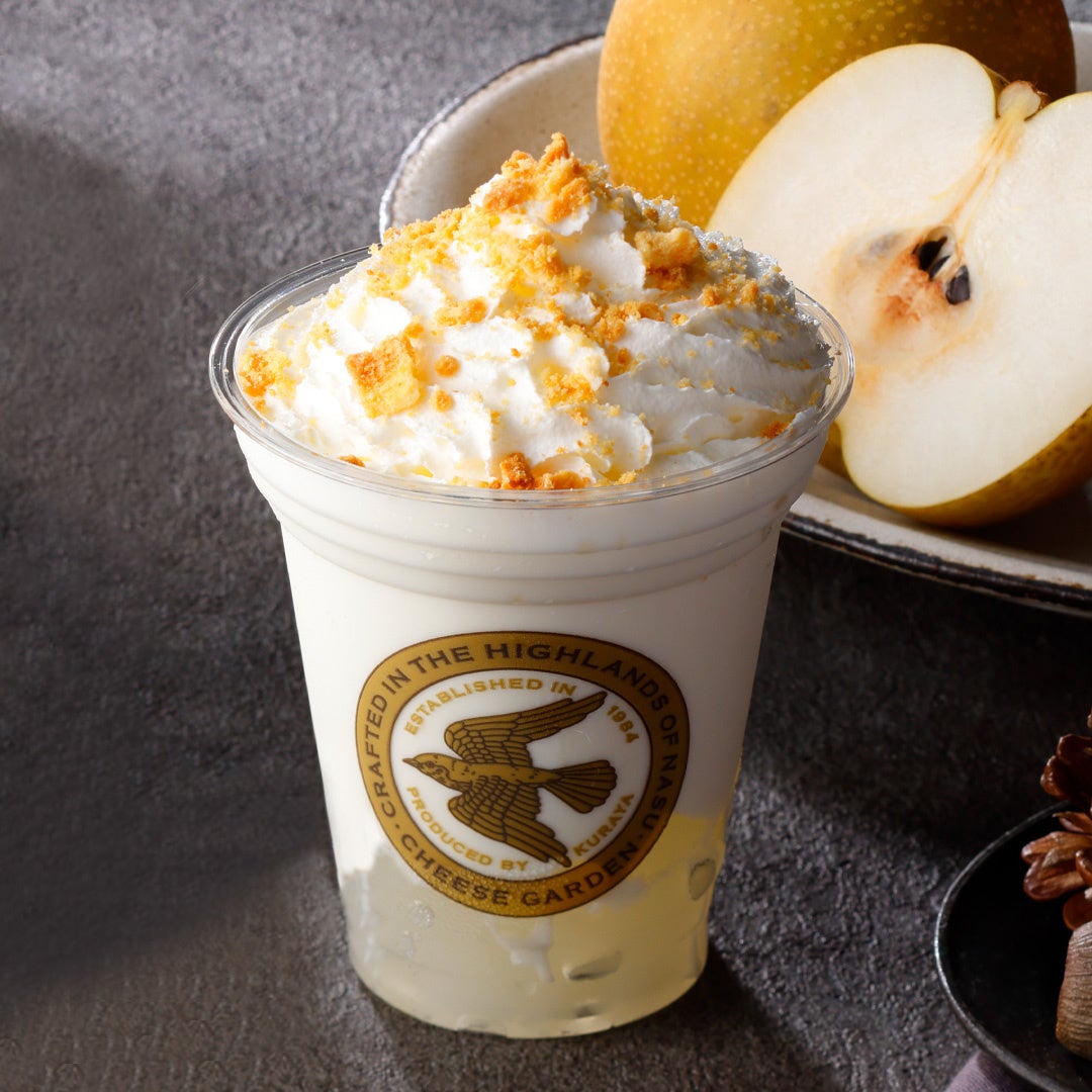 レアチーズケーキの風味が楽しめることで人気のフローズン仕立てのフロマージュドリンクに、柔らかい口あたりがお楽しみいただける和梨のジュレをあわせました。和梨の上品な香りが特長のジュレは爽やかさとすっきり感があり、ぷるんとした食感がお楽しみいただけます。レアチーズケーキ風味でマイルドなミルキー感のあるフロマージュドリンクとあわせることで、爽やかさの中に甘みや香りが引き立ち、もうひと口もうひと口と飲みすすめたくなる美味しさがお楽しみいただけます。