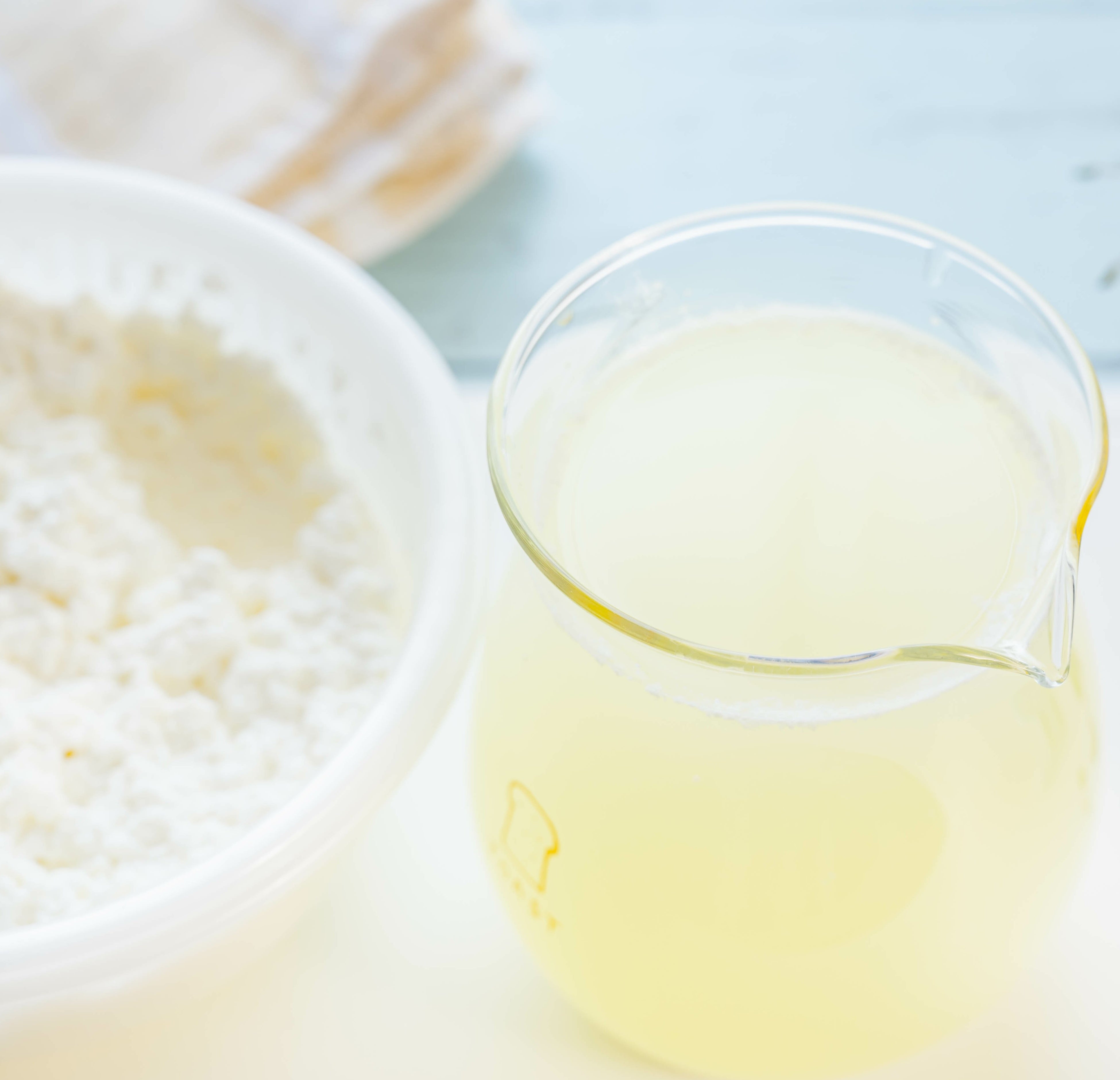 ホエイとは、ヨーグルトやチーズの製造過程で出てくる液体の部分。ホエイは通常廃棄されていますが、最近では低脂肪高たんぱく質な素材として注目されています。