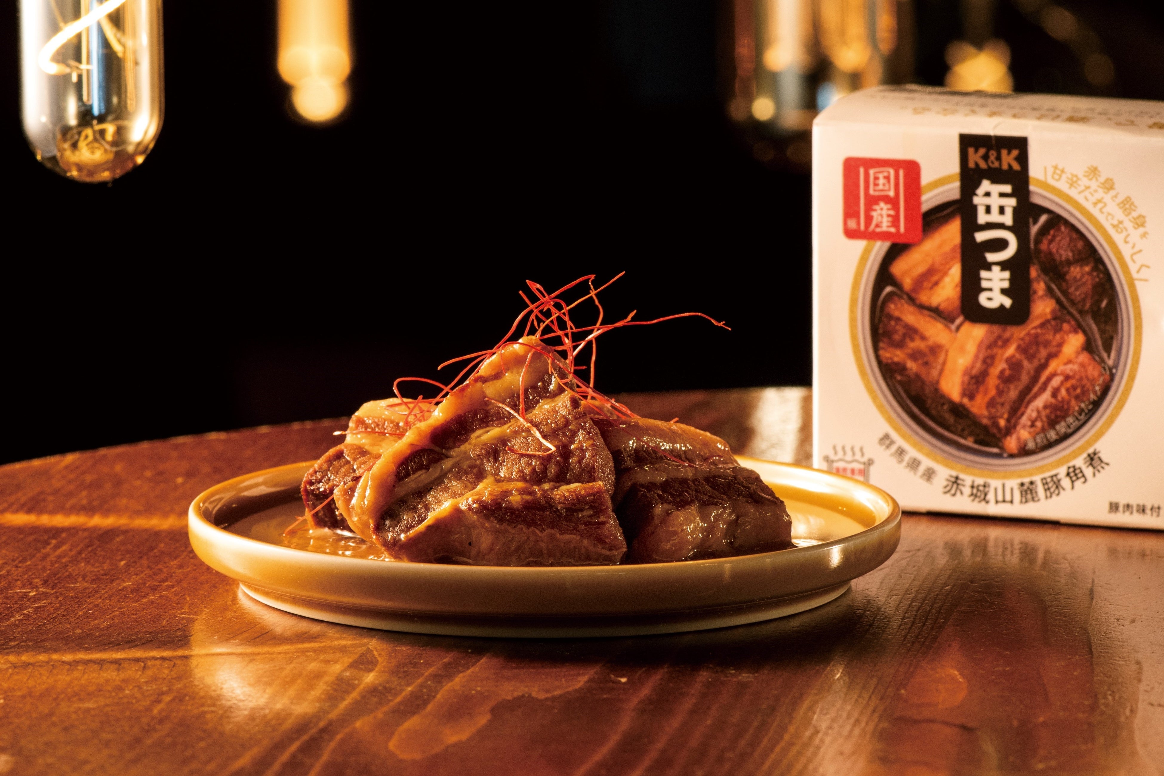 群馬県産「赤城山麓豚」のバラ肉が使用された、特製のたれで柔らかく煮込まれた赤身がとろける一品。