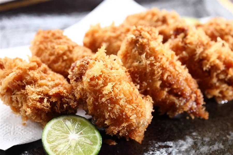 広島かきの旬の時期のかきを急速凍結。大粒のかきフライは揚げるだけで旬の広島かきの濃厚さ、おいしさを年中味わえ食べ応えもバツグンです。