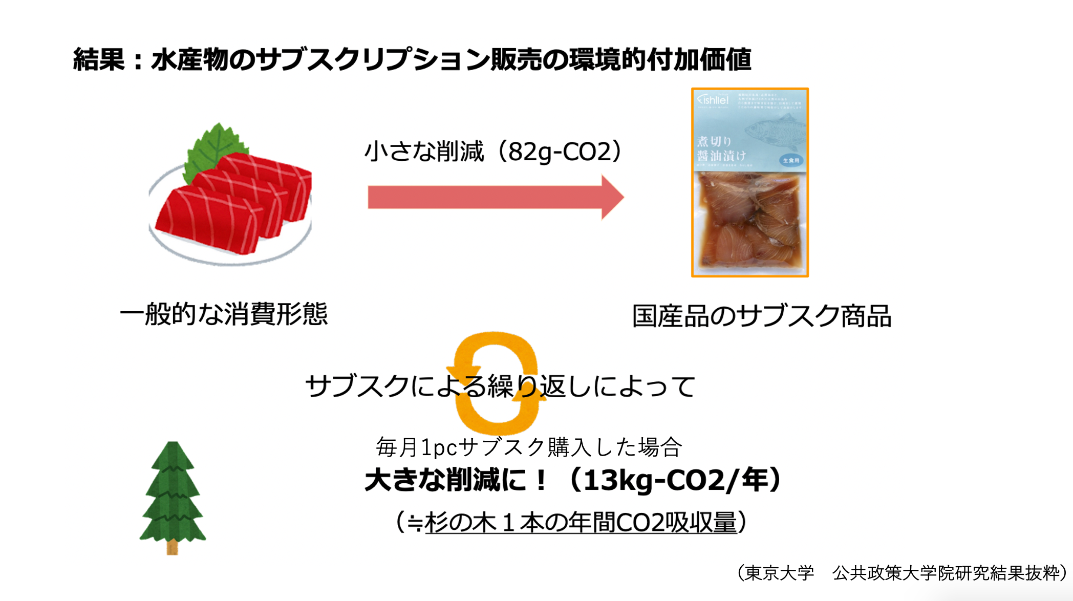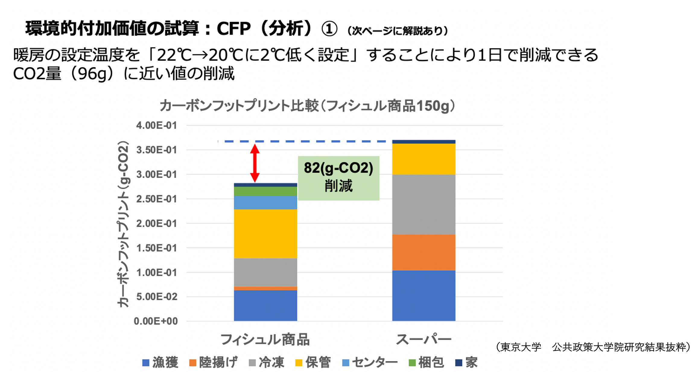 フィシュル消費がどのように環境的な付加価値があるのか、(東京大学大学院の)学生が実習で出した値を元にご紹介いたします。