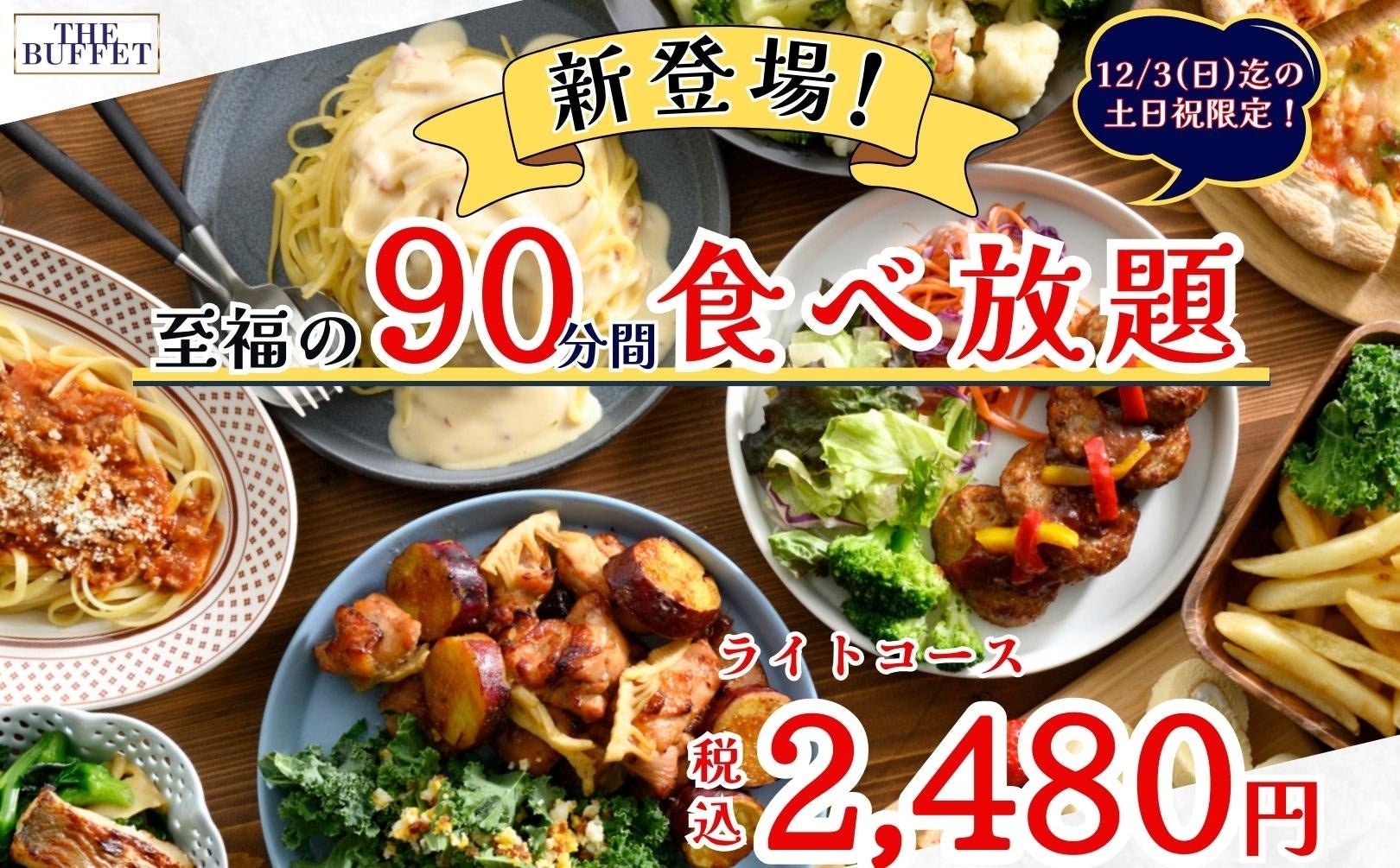 この度、よりお得にリーズナブルに充実の食べ放題を楽しんでいただきたく、2023年12月3日(日)迄の期間限定にて、土日祝ディナー限定の90分間コースが登場いたします!