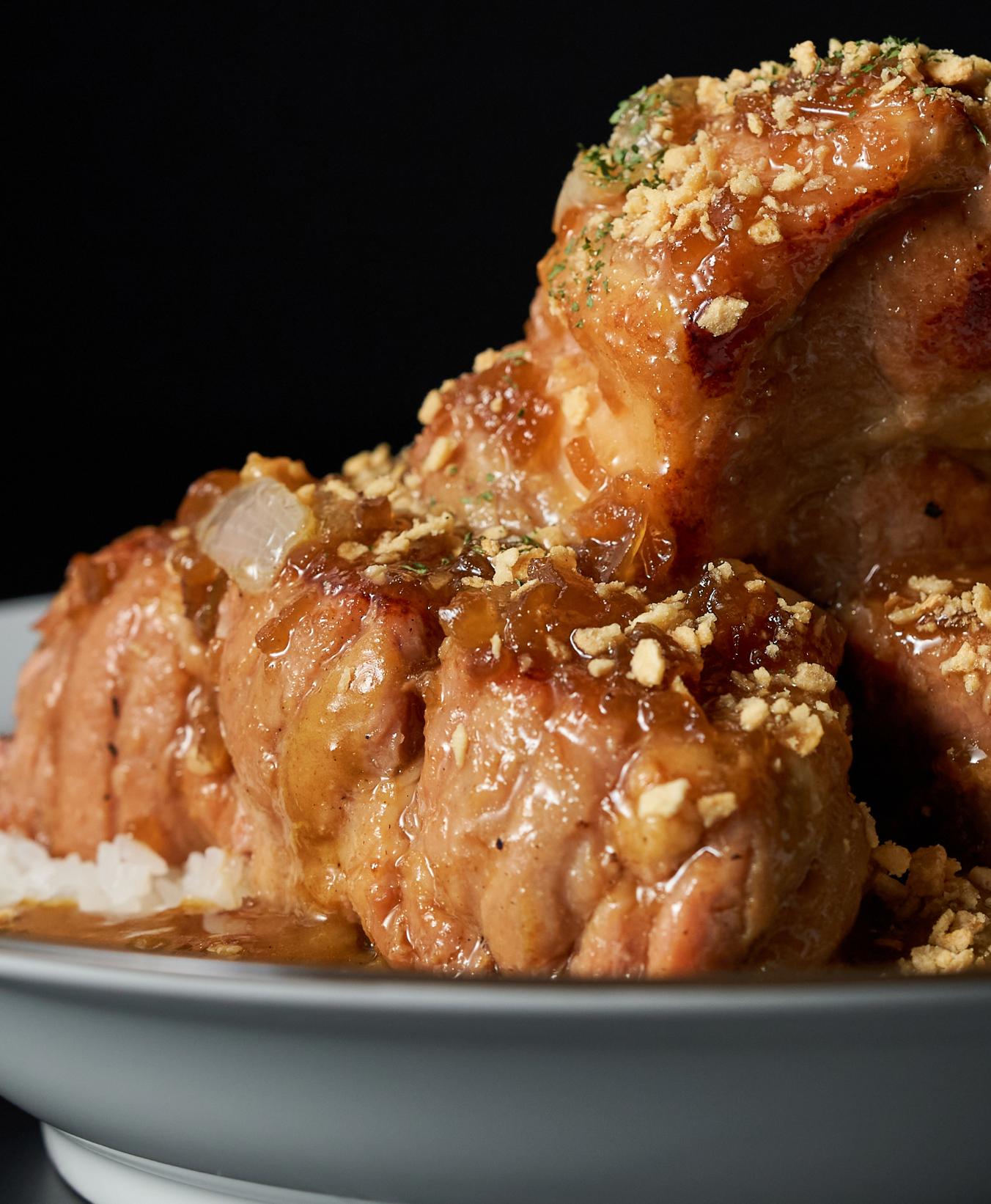 ココイチ史上最大の豚肩ロース肉を、真空調理によってスプーンでほぐれるほどのホロホロ食感に仕上げ、豪快にトッピング。その上に「シャリアピンソース」をたっぷりとかけました。ガツンと香るにんにくの風味とすりおろし玉ねぎの甘みが効いたしょうゆベースのソースと肉塊の相性は抜群です。
