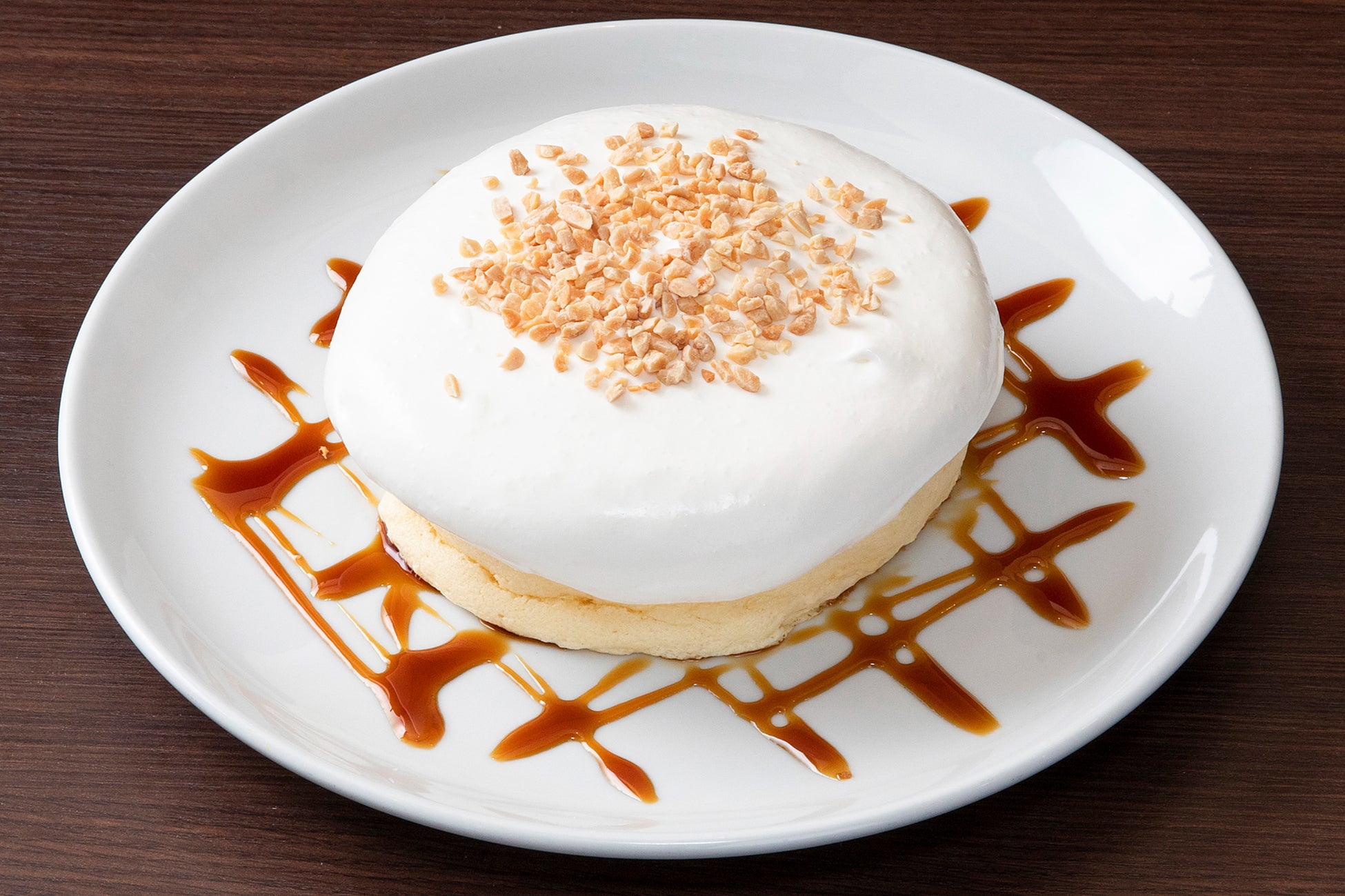 「高倉町珈琲」の看板商品「特製クリームリコッタパンケーキ」はオープン以来、不動の人気NO.1メニューです。ふんわりとした生地は焼き手の技術が問われる職人技のパンケーキです。低脂肪でフレッシュなリコッタチーズと卵黄を練りこみ、卵白で泡立てたメレンゲを加え、注文を受けてから一枚ずつ丁寧に焼き上げています。