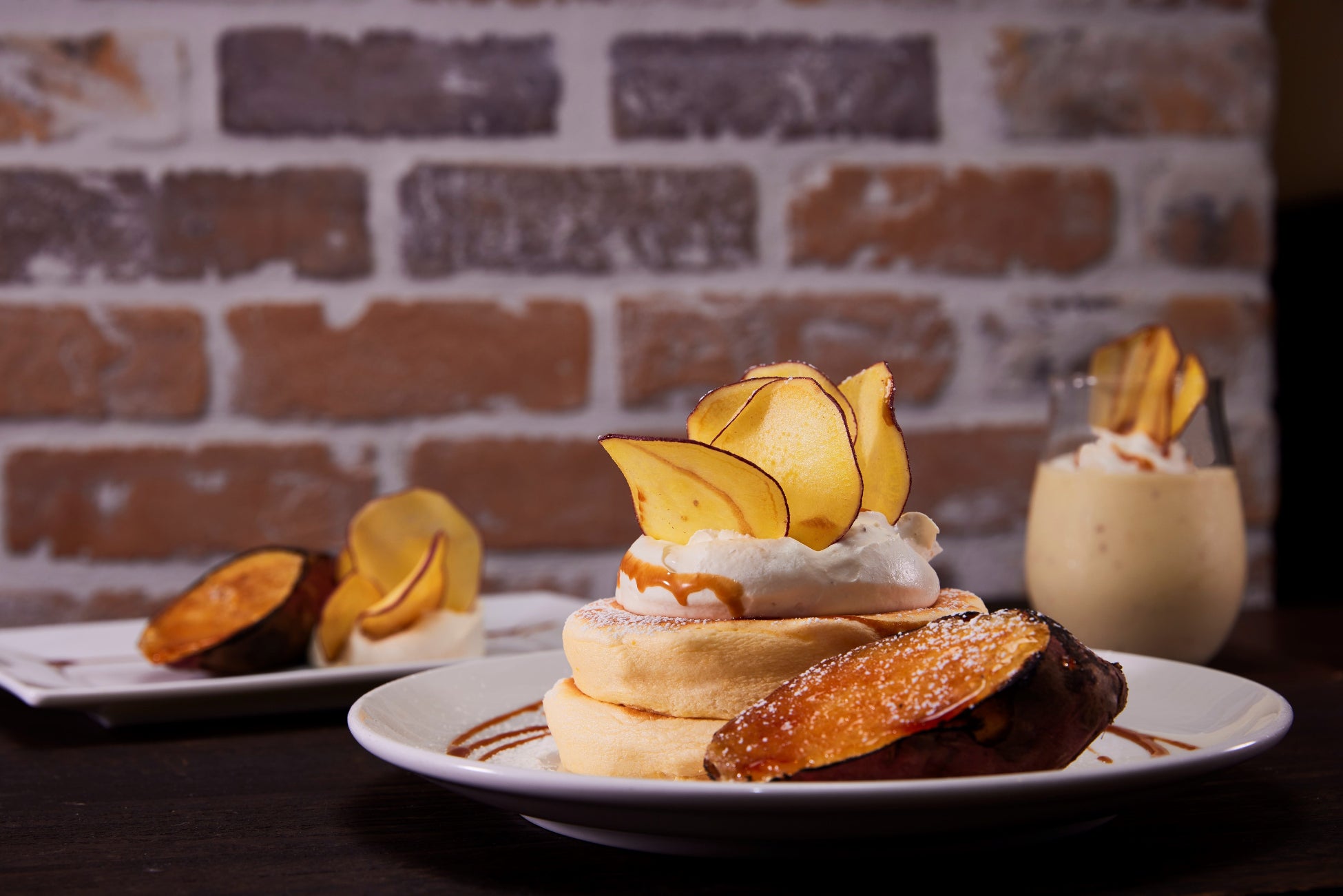 昨年も大好評だった、「紅はるかのリコッタパンケーキ」は今年も茨城県産の「紅はるか」を使用。特製のさつま芋クリームとともに焼き芋にさつま芋チップと、いろいろな食べ方で楽しめます。さらに、芳醇な香りと蜜を加えたかのような甘みが特徴の「紅はるか」をシンブルな焼き芋にしてキャラメリゼし、食感も楽しい「焼き芋キャラメリゼ」。さつまいもの味わいが濃厚な飲むスイーツ「焼き芋スムージー」がフェアメニューとしてラインナップされます!