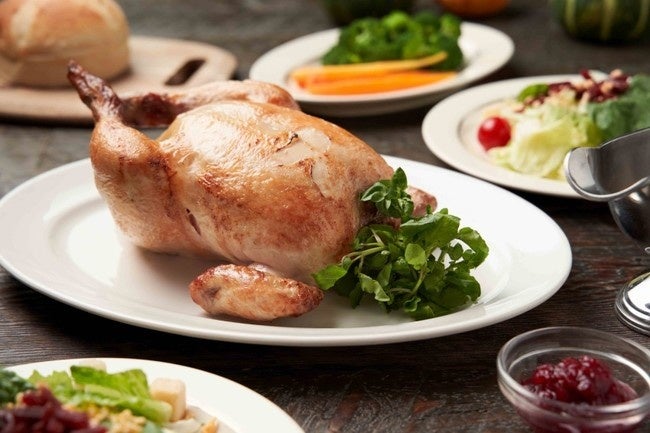 お料理の定番はターキー(七面鳥)のローストです。ロウリーズでは、2名様からお楽しみいただけるローストターキーをご用意します。アメリカ産の良質なターキーをソミュール(香りづけした塩水)に浸け、味を染み込ませながらしっとりと焼き上げます。また、ソースはマスタードグレービーとクランベリーレリッシュの2種をご用意します。プライムリブと合わせて、ターキーもお楽しみいただき、アメリカの雰囲気を感じてみてはいかがでしょうか。