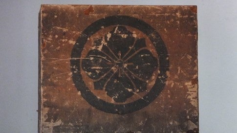 江戸安政三年(1856年)矢部屋許斐家紋木箱 「丸ニ剣花角 紋」