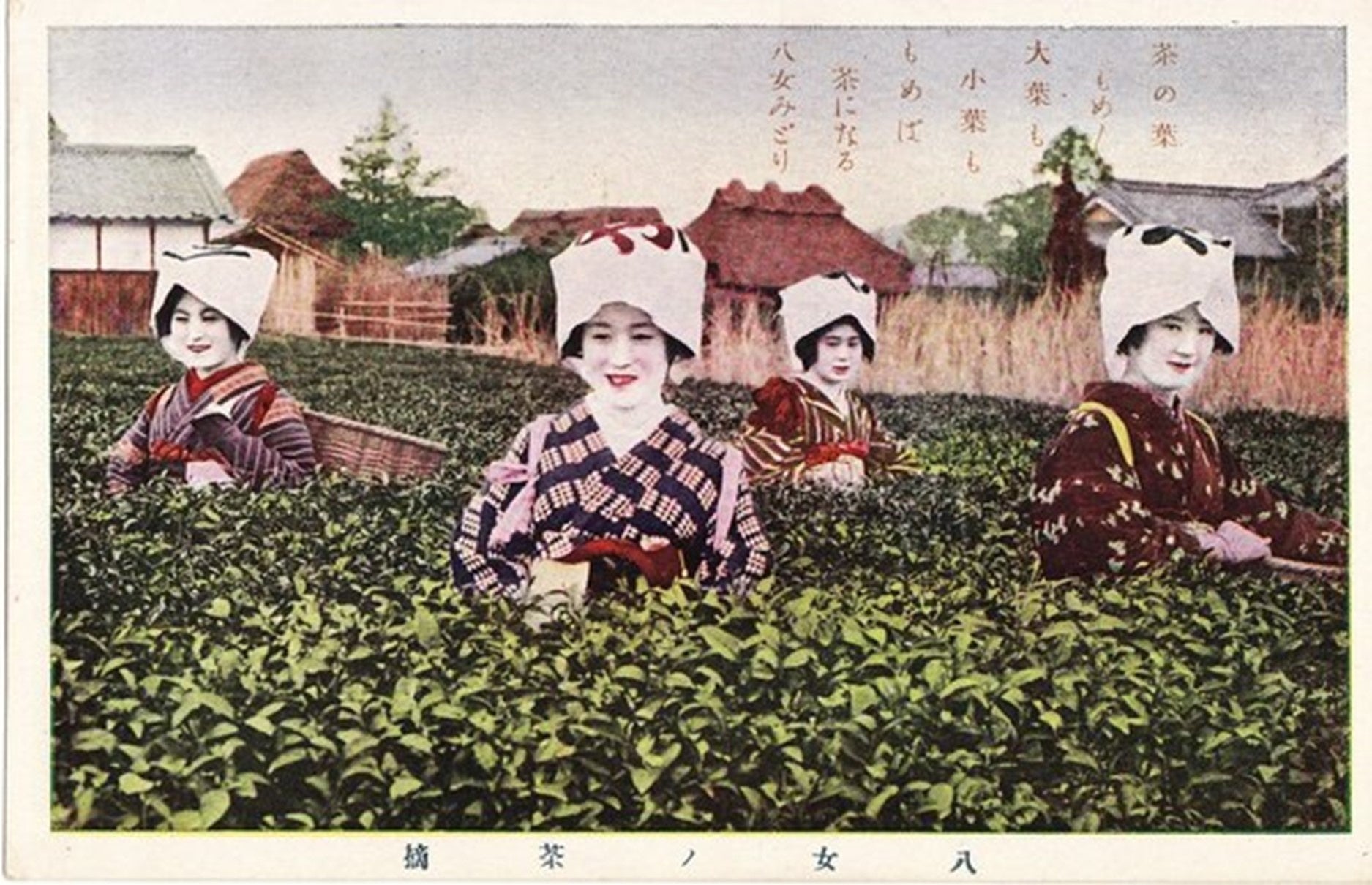 昭和初期 許斐本家オリジナルポストカード 「茶の葉もめもめ大葉も小葉ももめば茶になる八女みどり」