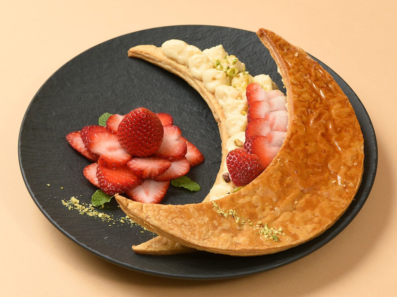 パイの中にカスタードクリームといちごをサンドしたミルフィーユパイです。