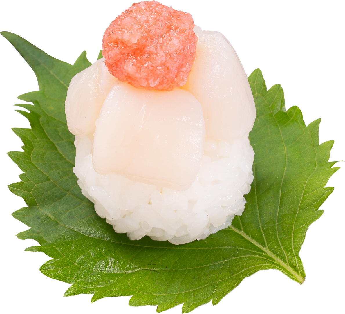 生小柱の旨みにたらこのアクセントと大葉の爽やかな香りの相性が抜群です。