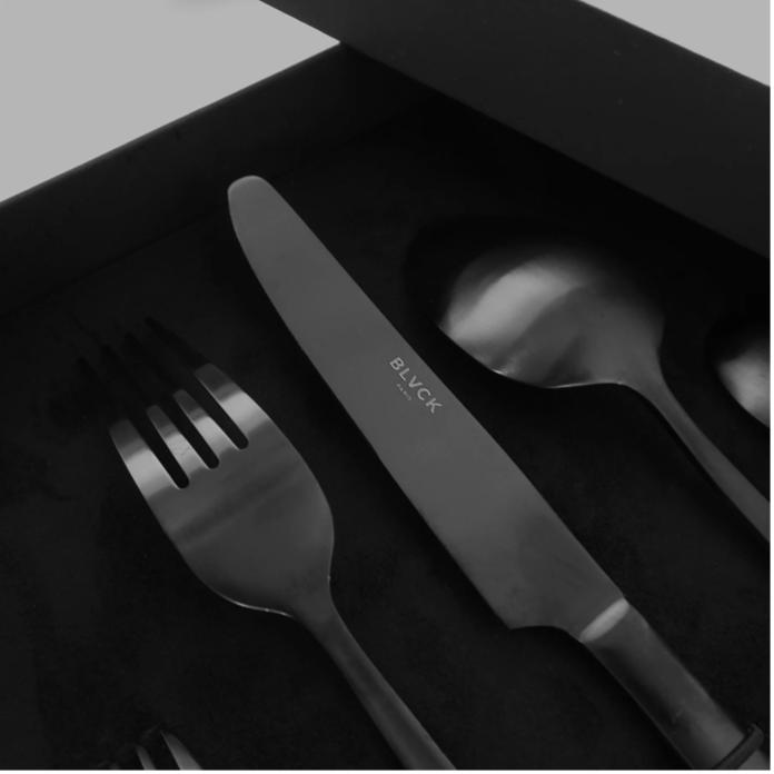 中でも注目なのは、オールブラックの「カトラリー」。ブランドロゴ入りなので、食事のたびにスタイリッシュな世界観を堪能できます。