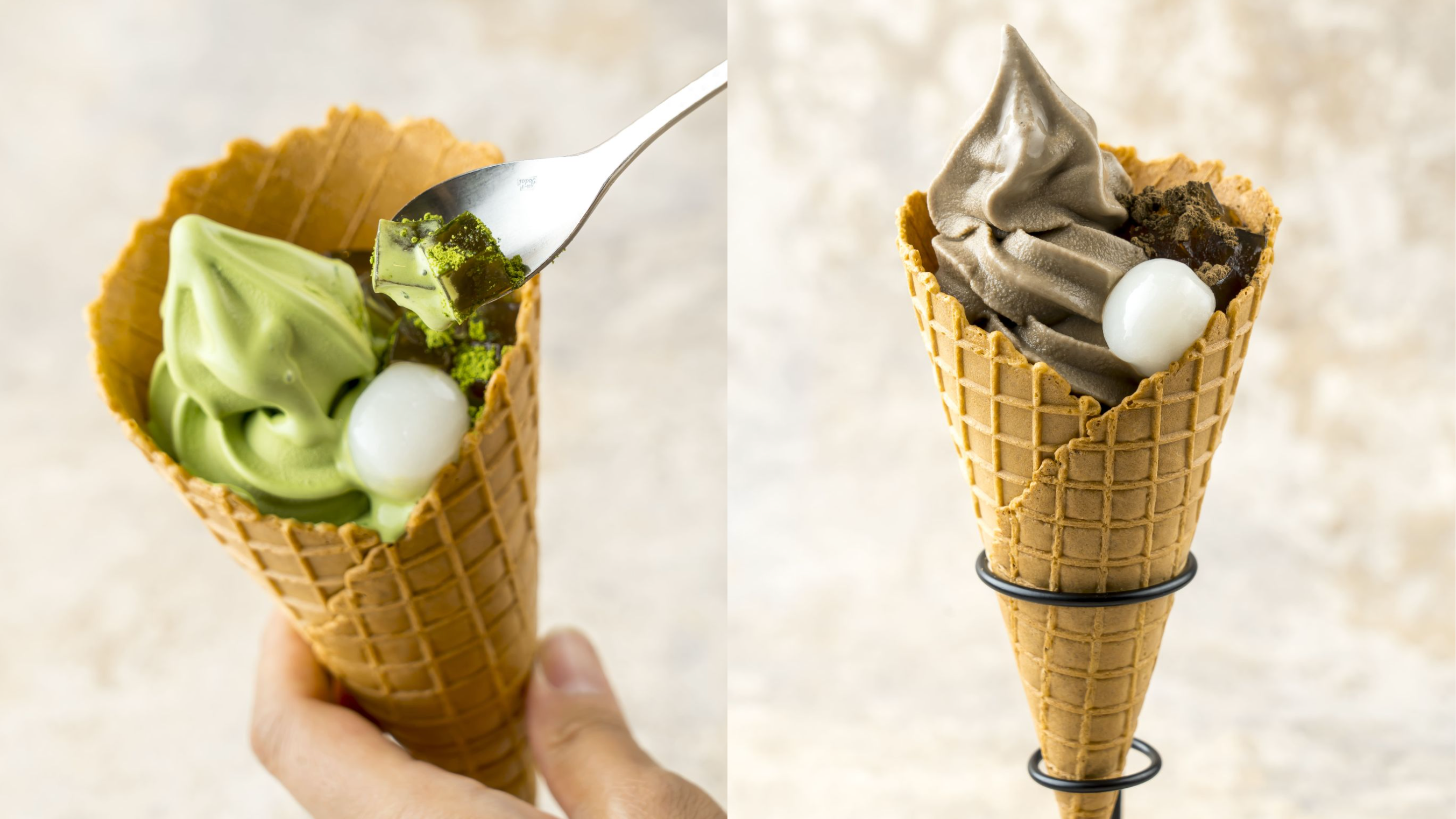 手作りの黒糖わらび餅を丁寧に切り分けて、白玉と一緒にトッピング。まるでカフェで頂くような人気メニューの素材を盛り込んで、より手軽に、テイクアウトのソフトクリームとして味わえる一品に仕上げました。ちょっぴり贅沢なソフトクリームは、ラゾーナ川崎店だけの特別メニューです。この機会にぜひご賞味ください。