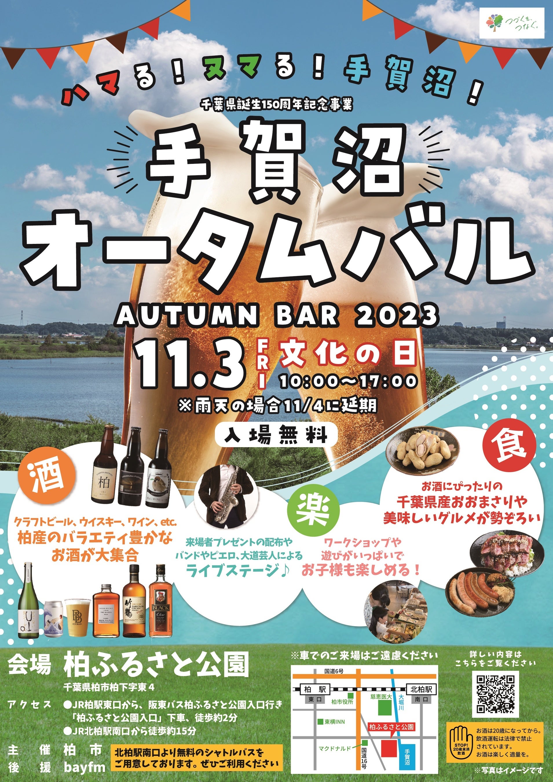 柏市では、手賀沼周辺地域の活性化や市内酒類をはじめとする地域の特産品を多くの方に知っていただきたく、柏市で初のバルイベント「手賀沼オータムバル」を実施します!