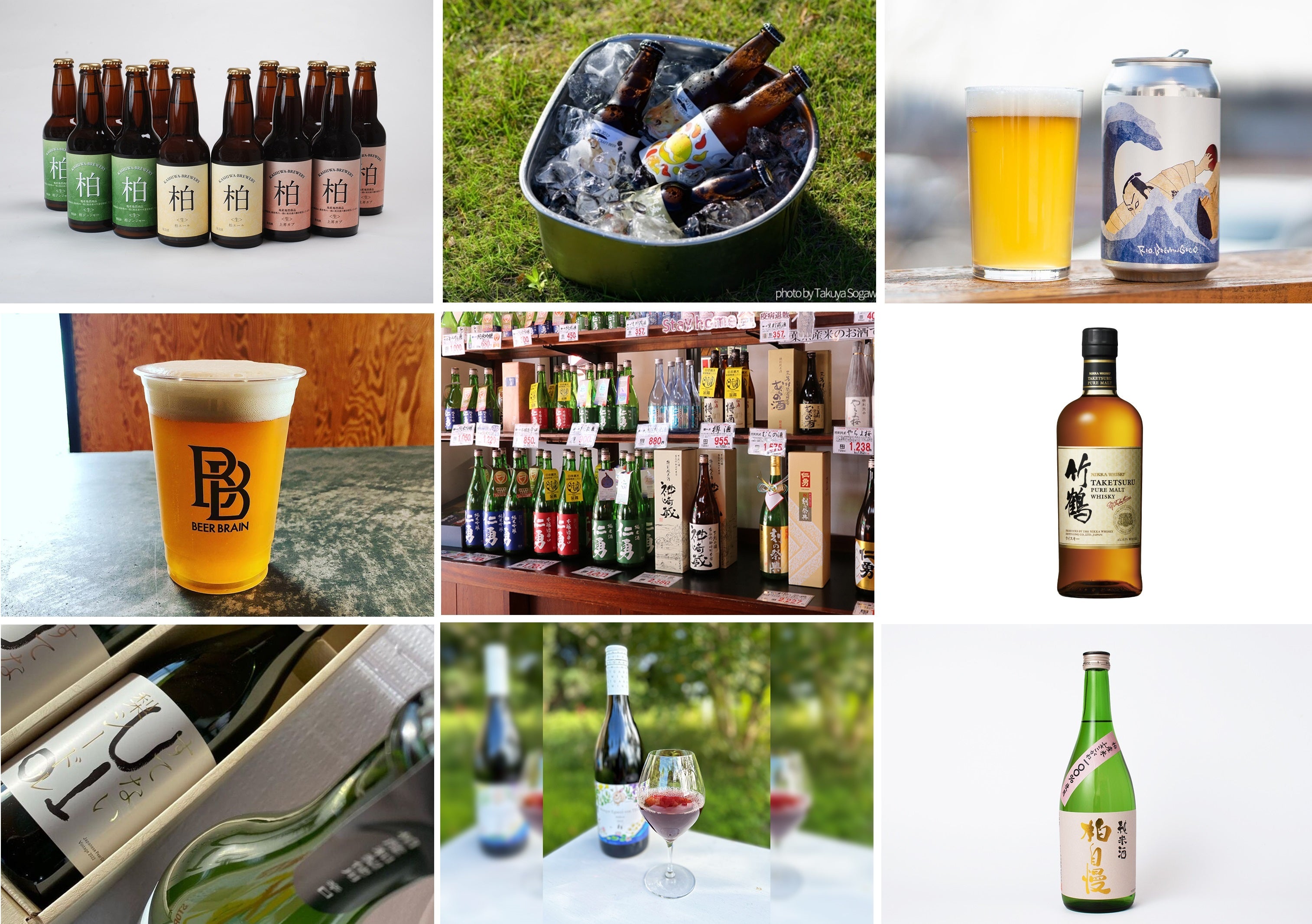 地元で醸造されているクラフトビール、柏の農産物を原料としたワインや日本酒、市内工場で出荷されているウイスキー等の多様なお酒を楽しめる!