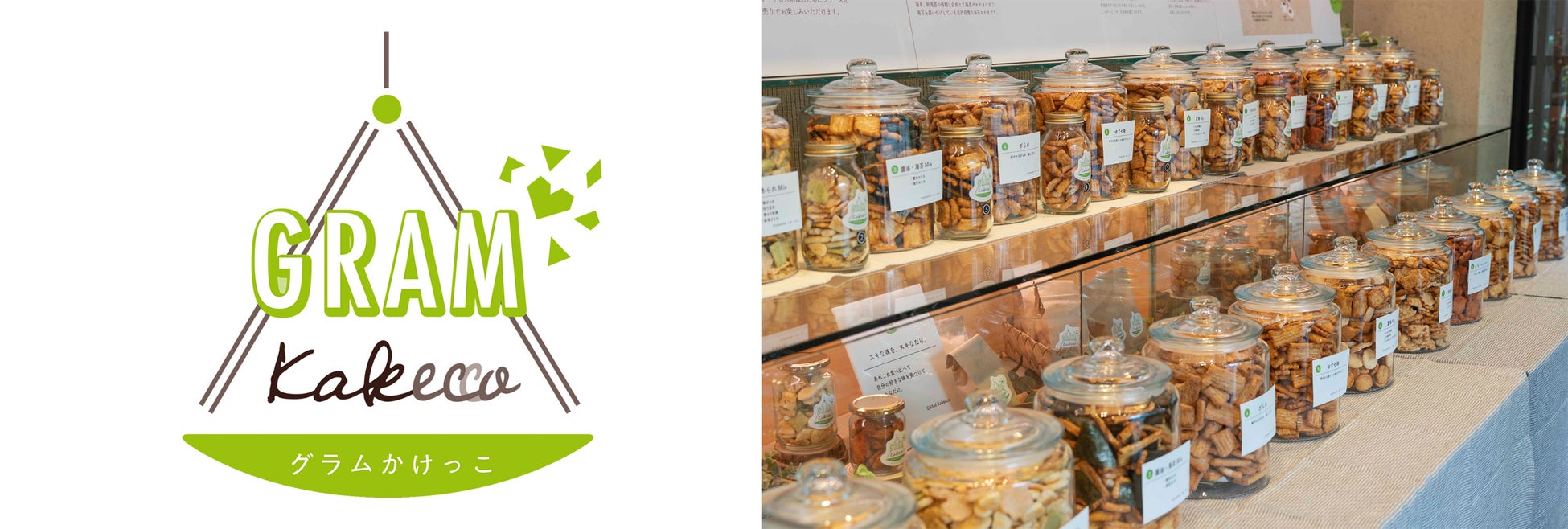 この度、プロジェクトの第1弾として、おかきの製造工程で出る“欠けたおかき”を好きな分だけ詰め合わせることができる量り売り販売「GRAM Kakecco(グラム かけっこ)」を開始します。最初の取り組みとして、2023年11月2日(木)〜11月4日(土)の3日間、中央軒煎餅 本店(東京都板橋区)にて「GRAM Kakecco」をお楽しみいただけるPOP UP STOREを開催します。