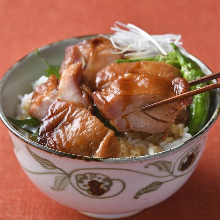 輝く照りが食欲をそそる立派な身。食べればしっとり柔らかく、品のよい鶏の旨みと甘めのタレが口中に広がる。国産鶏モモ肉を独自の調味液に3 ~4日漬け込み、和食料理人が1本1本釜に吊るして焼いた逸品だ。つまみにも最高だが、ご飯にのせて追いダレするとハマる旨さ。箸が止まらない!