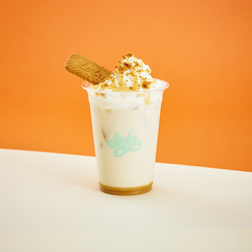 キャラメルシナモン味のザクザク食感クッキーと生クリームをトッピング!