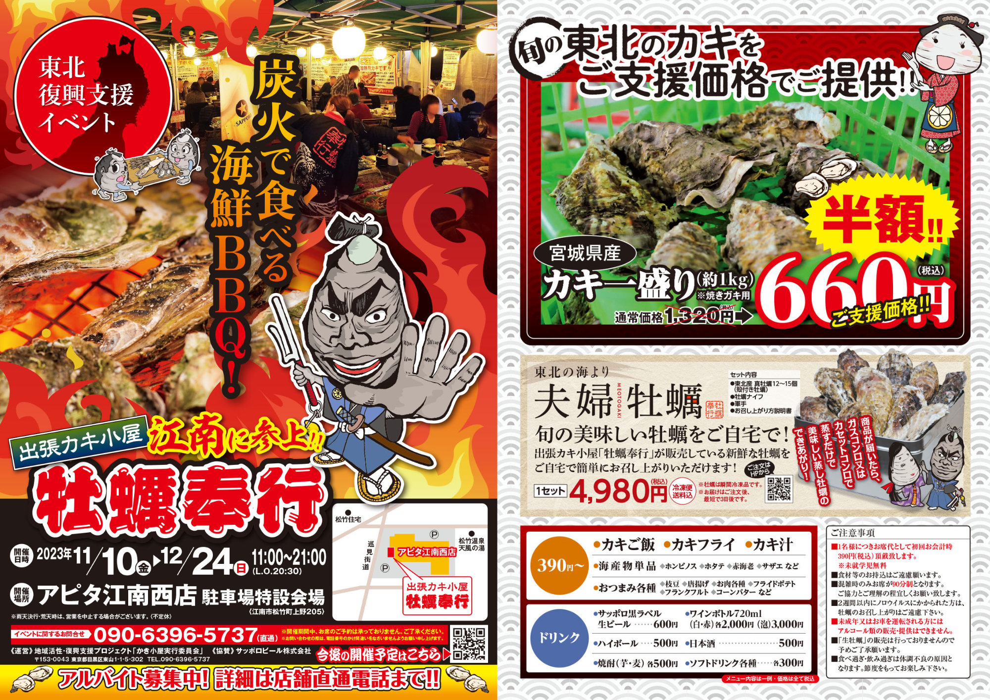 出張カキ小屋 【牡蠣奉行】が『アピタ江南西』に期間限定オープン!