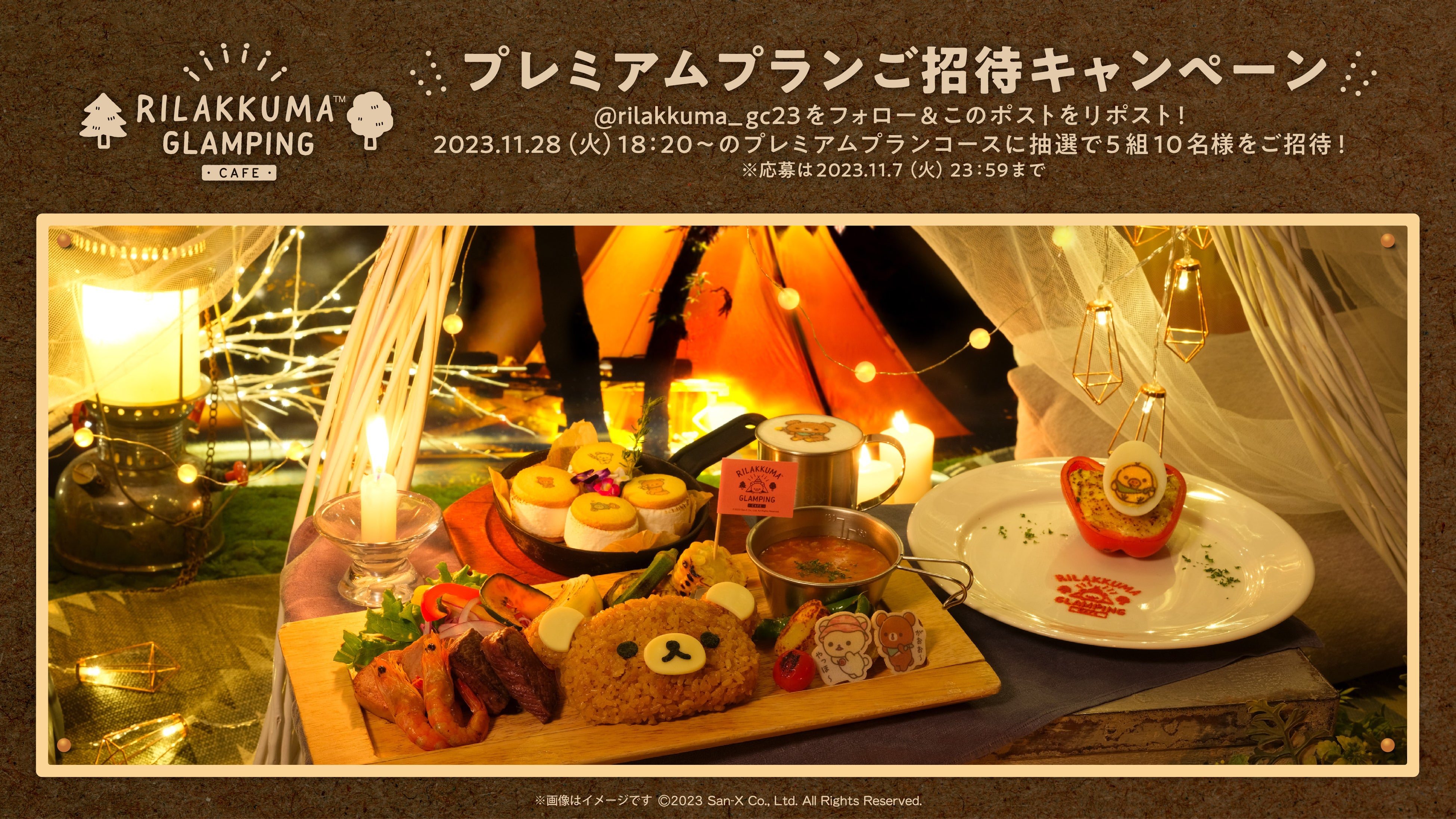 「リラックマグランピングカフェ」で11月28日(火)18:20スタートの回にてご利用いただけるプレミアムプラン(お1人様11,000円相当のディナーコース)をペアでご招待