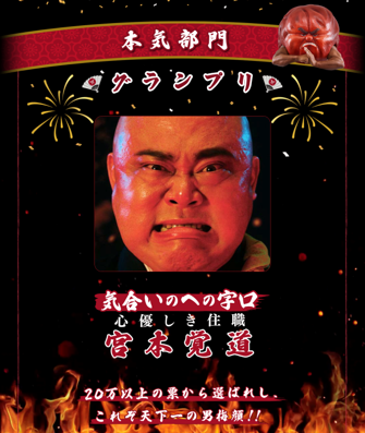 男梅顔の頂点に輝いたのは、「心優しき住職、宮本覚道さん」。グランプリ副賞となるCMは、11月5日、1日限定で放送予定。男梅蔵のように滝に打たれる王者の姿を是非ご覧ください!