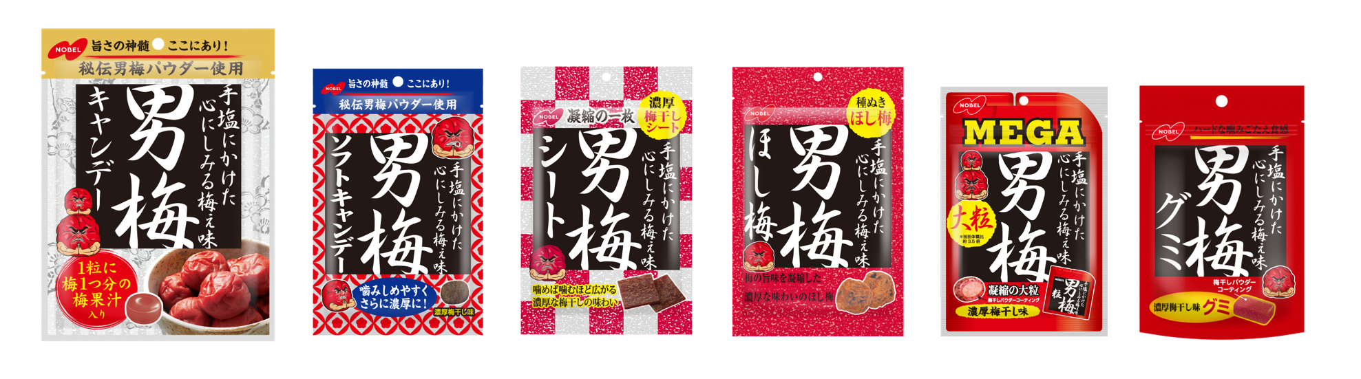 こだわり抜いた塩味と 梅の旨味をとことん追求し、秘伝の男梅パウダーで 唯一無二の梅干しの味わいを実現した商品。キャンデーのみならず、グミ、シート、ソフトキャンデーなど、多彩にラインアップしています。