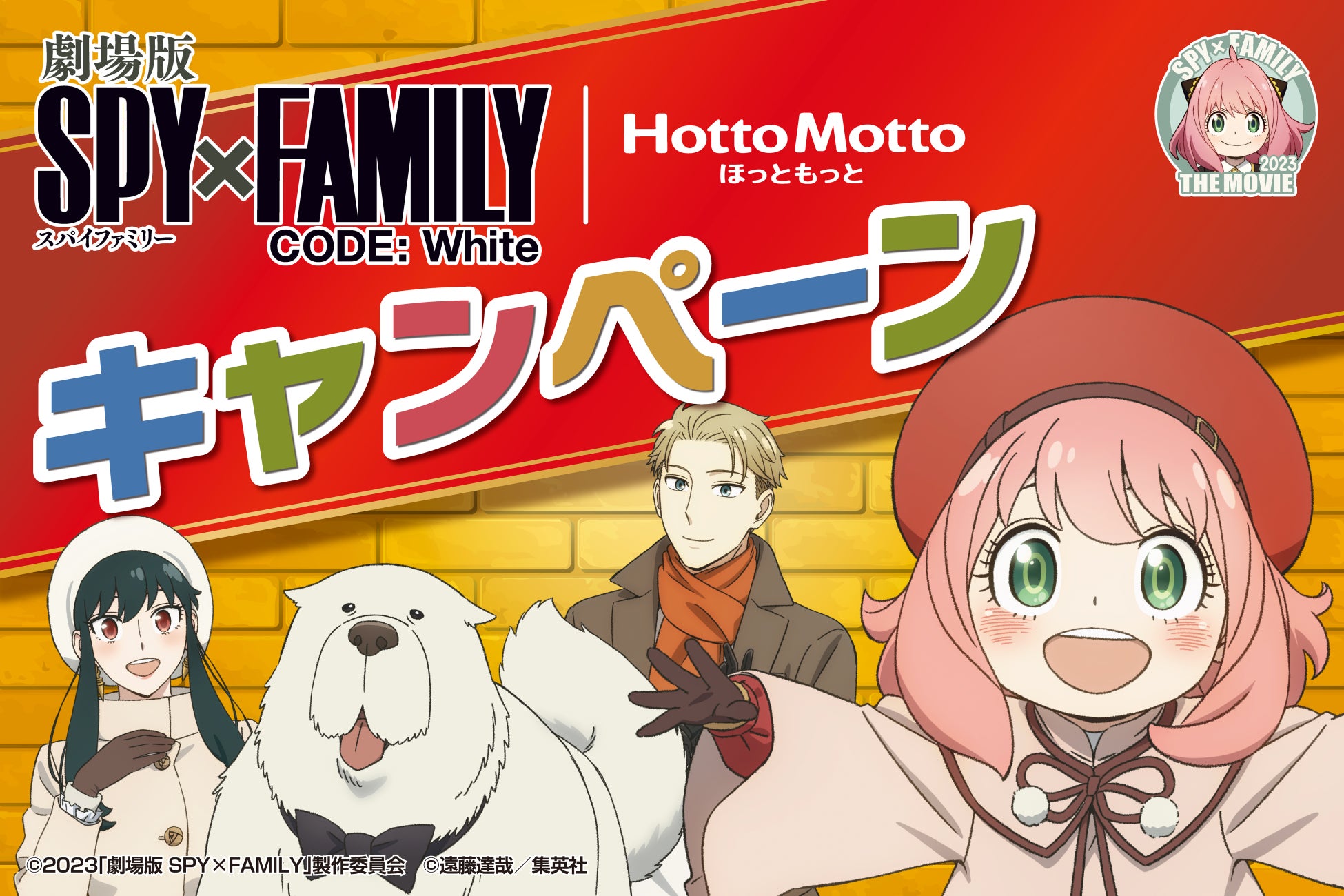 このたび「ほっともっと」では、『劇場版SPY×FAMILY CODE:White』とのキャンペーンを実施いたします。映画デザインのオリジナルグッズがもらえるキャンペーンを店頭やWEBを中心に実施いたします。キャンペーンの開始日は11月20日(月)を予定しております。お楽しみに!