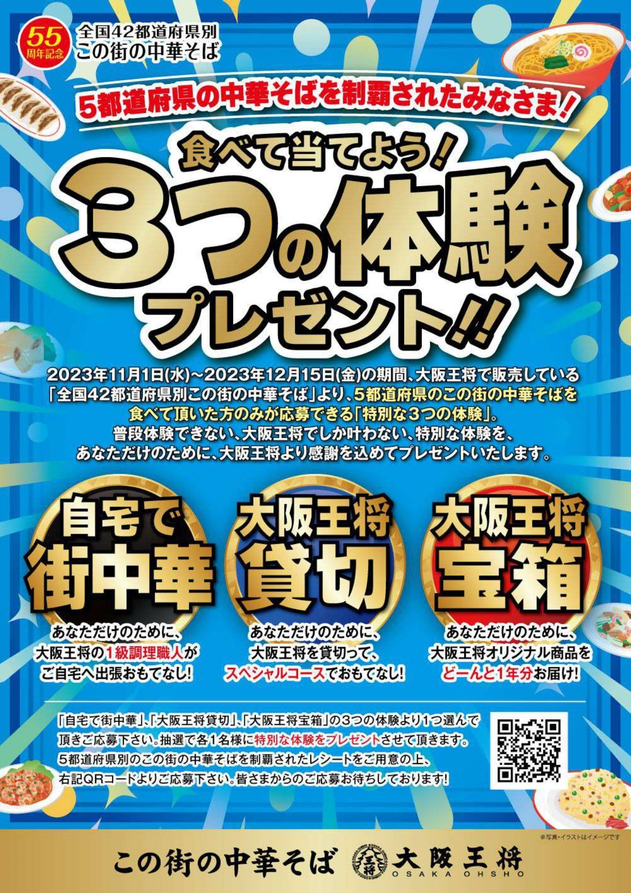 5つ以上の都道府県で『この街の中華そば』を食べていただいた方のみが応募できる「特別な3つの体験」が抽選で当たります。
