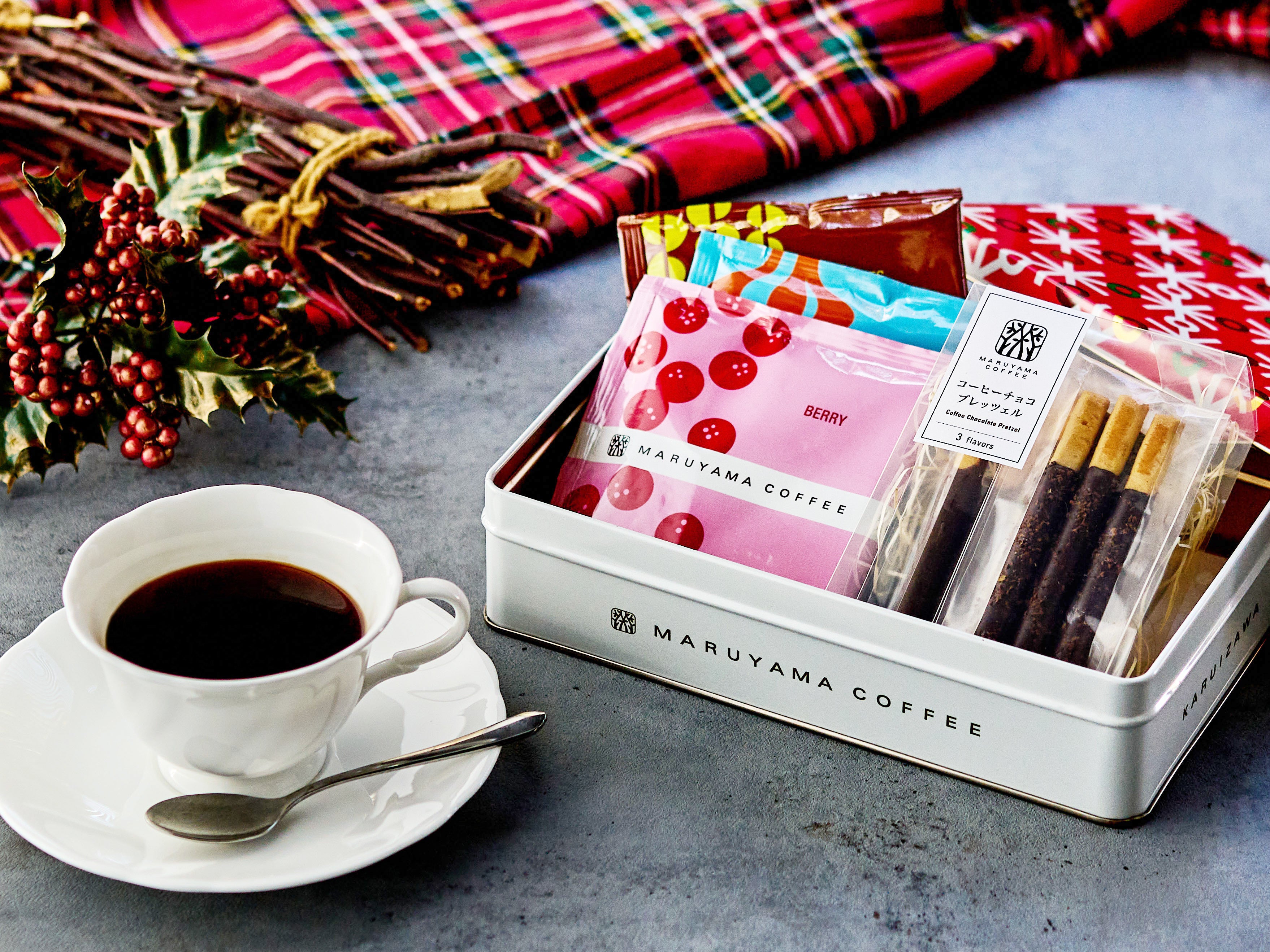 丸山珈琲がセレクトしたクリスマスにピッタリのコーヒーとプレッツェルをシーズナル缶に