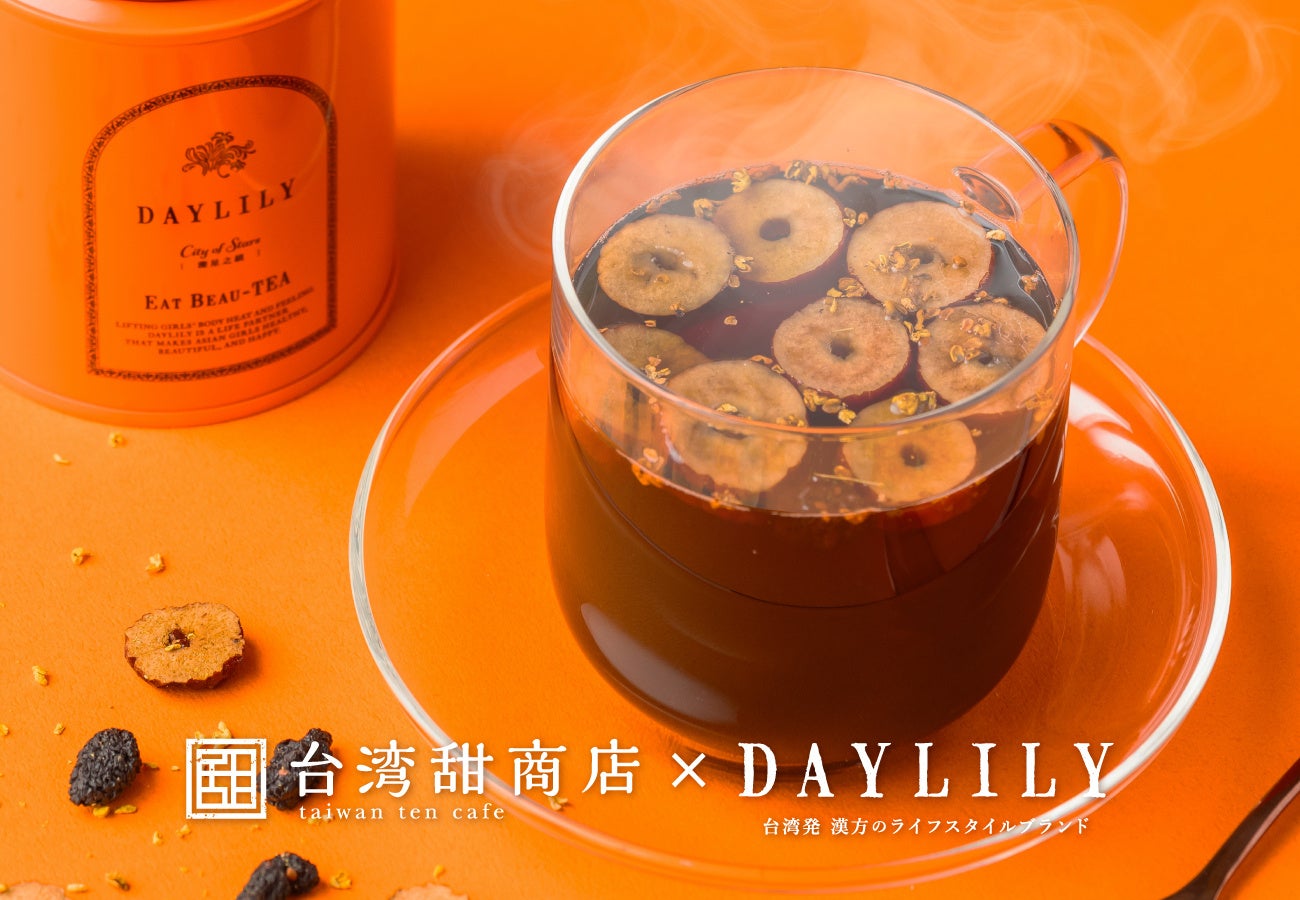 累計販売数170万杯を突破し、和漢素材をたっぷり使用したDAYLILY人気の和漢ブレンドティー「EAT BEAU-TEA~City of stars~」と台湾甜商店自慢のホットジャスミンティーをあわせたドリンク。