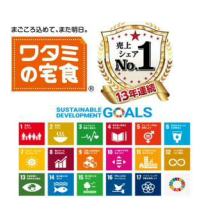 「ワタミの宅食」は、日替わりのお食事と“まごころ”をお届けすることで“社会を支えるインフラ”となることを目指し、事業を展開しています。お弁当・お惣菜は、お客さまと同じ地域に住む“まごころスタッフ”がお届けしています。毎日約24万食のお弁当・お惣菜をお届けしており、病者・高齢者食宅配市場「売上シェア13年連続 No.1」※(2010年~2022年)を達成しています。2020年3月には、業界として初めて、自社弁当容器を回収し、新たな容器としてリサイクルする取り組みを全国に展開するなど、SDGsの目標達成にも貢献しています。