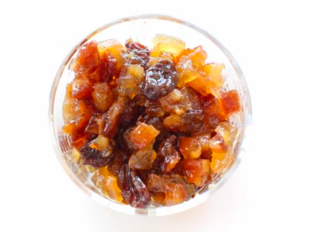 フルーツを別々に漬けて熟成してあるので、それぞれの素材の風味が生きたミックスフルーツです。洋酒とフルーツの甘くて深い香りが焼き込んだお菓子からもふわっと広がり、思わず鼻を近づけてしまいます。水分量がちょうどよいので、そのまま焼き込みに使えて便利です。