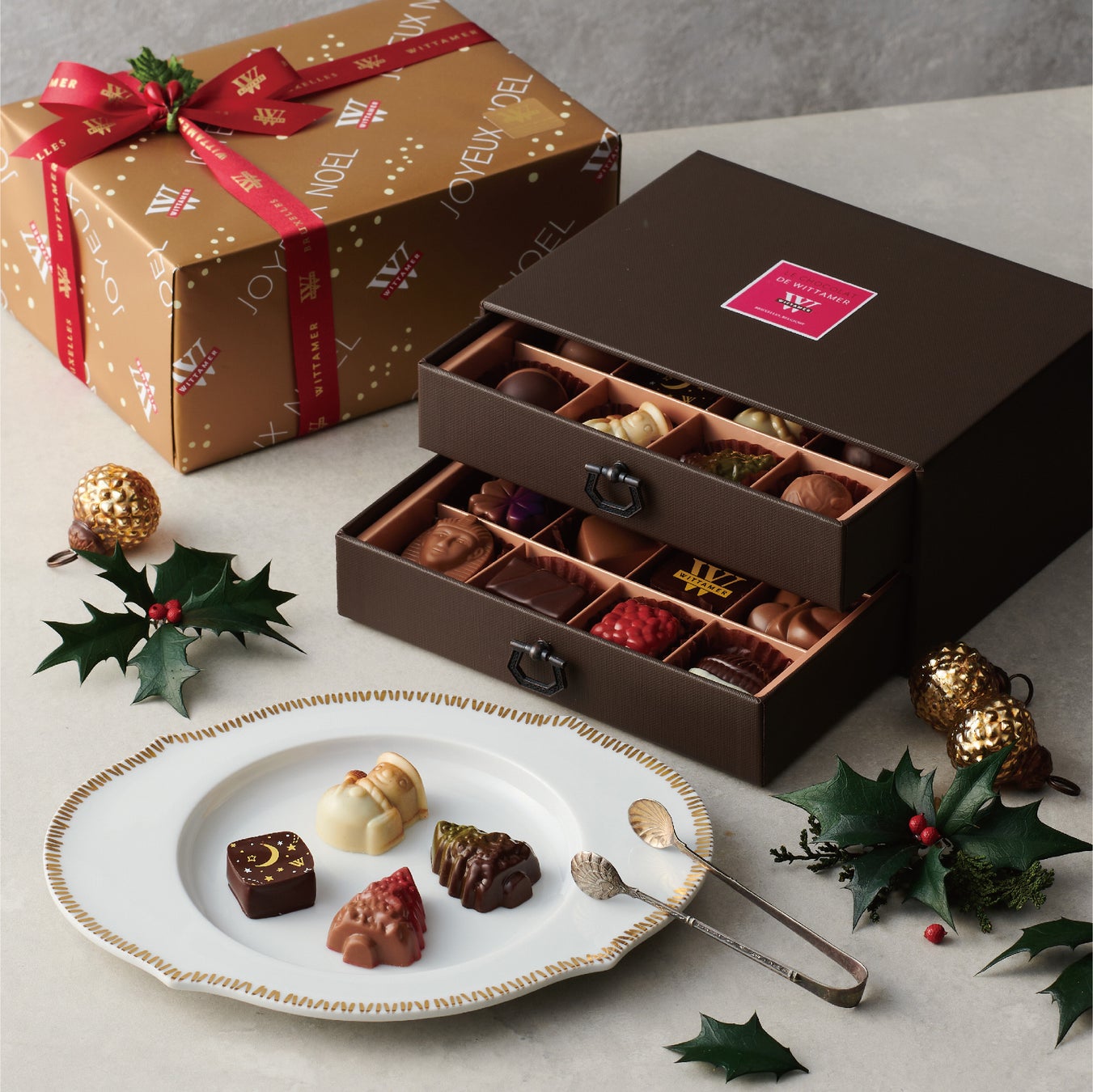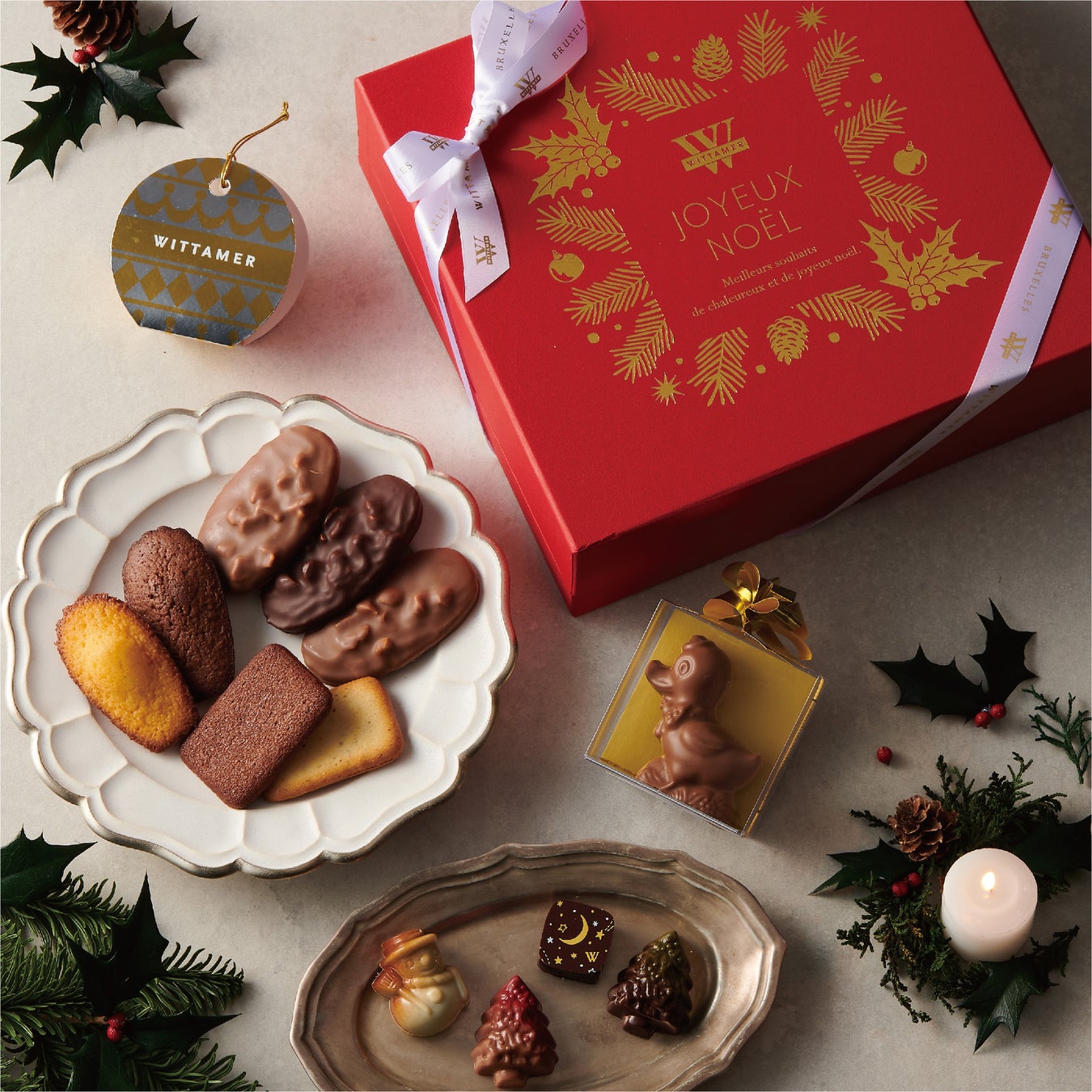 ヴィタメールを代表するプラリネショコラやトリュフと、クリスマス限定の雪だるまやツリーのショコラを詰め合わせ。ヴィタメールのショコラを存分に楽しめるひと箱です。