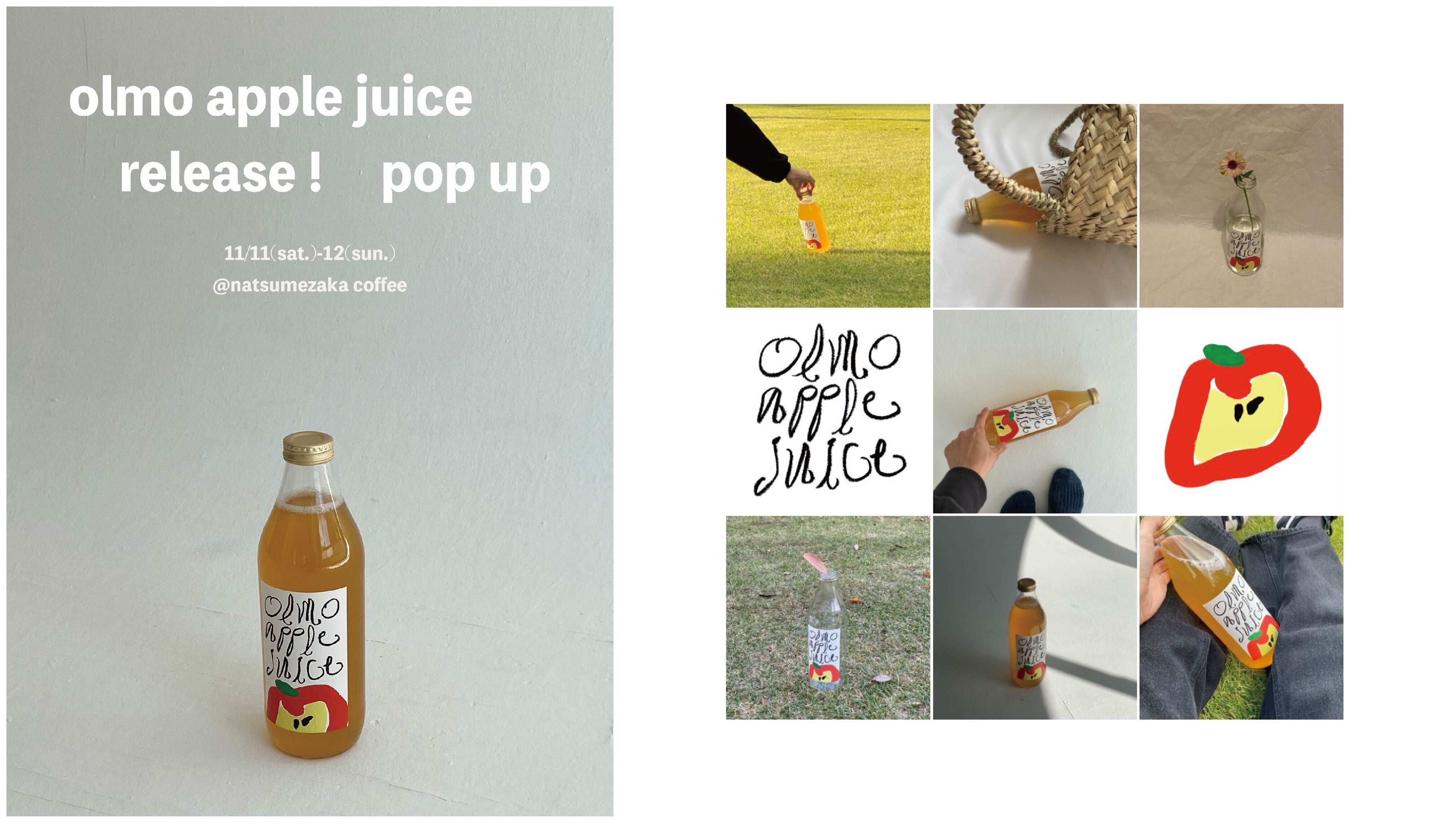 olmo第一弾の商品であるりんごジュースのリリースポップアップイベントを開催します。