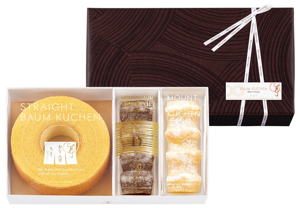ねんりん家の誇るバームクーヘンの数々を満喫いただける、冬だけのギフトです。バター風味たっぷりの代表作『マウントバーム しっかり芽』。ショコラのうまみを重ねた冬限定『マウントバーム ブラウニー』。たまごたっぷりでふっくらジューシーな『ストレートバーム やわらか芽』。