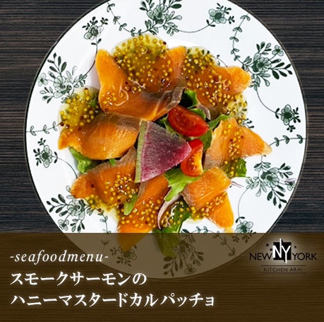 【スモークサーモンのハニーマスタードカルパッチョ】880円