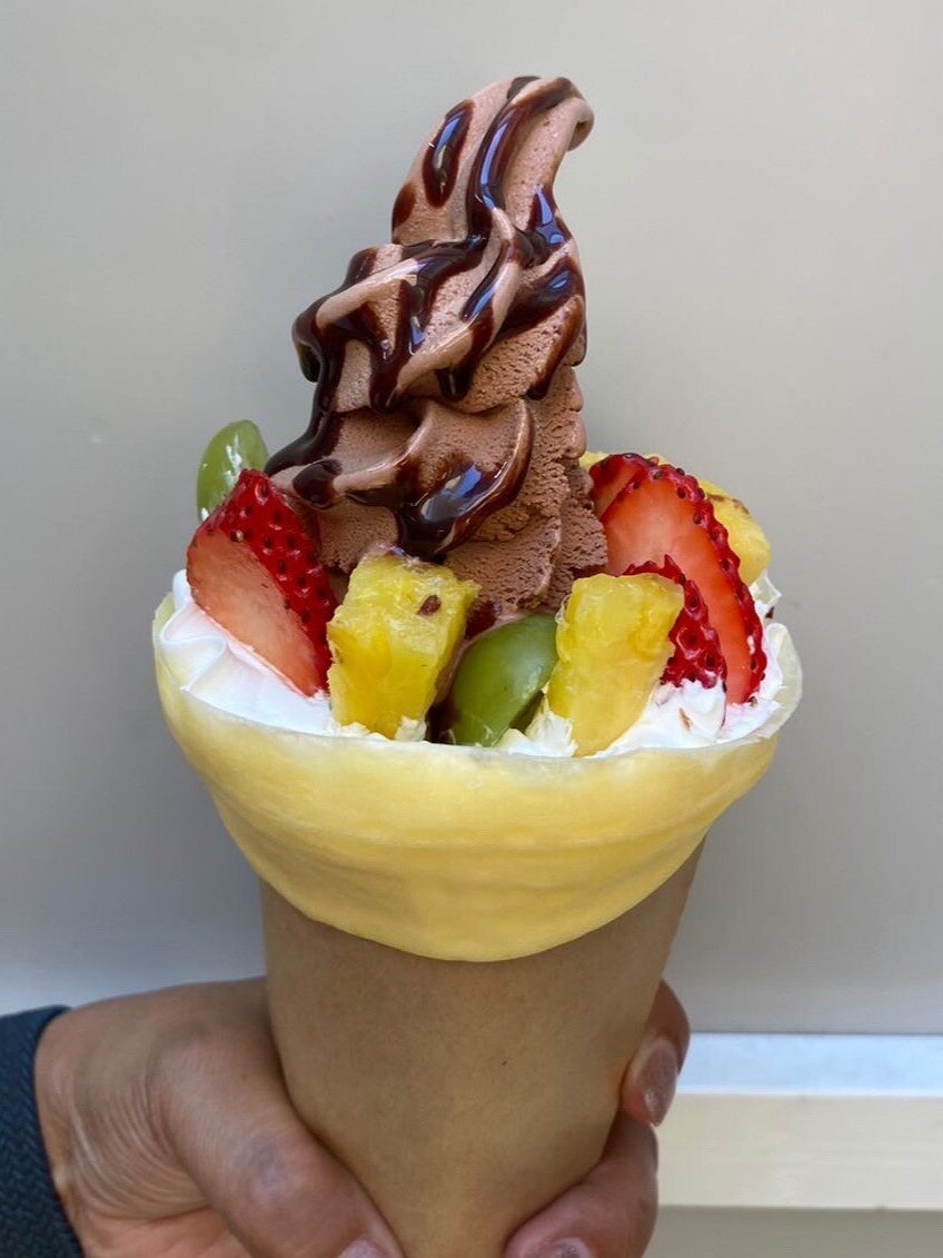 ソフトクリームもクレープも好きで、フルーツも好きなので全部食べれるように。佐賀はくだものが美味しいのでフルーツを入れて。