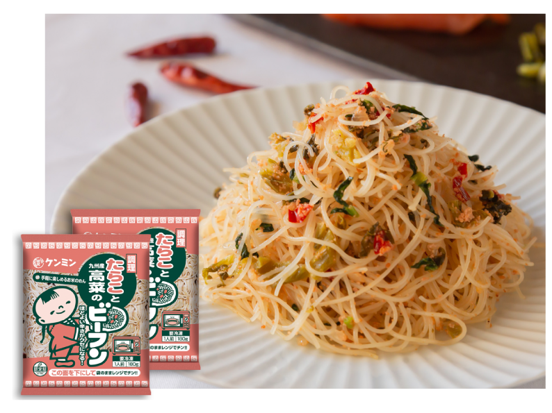 ●販売価格:たらこと高菜のビーフン700円(2食入り)、兵庫ケンミン焼ビーフン700円(2食入り)、韓国風はるさめ炒めチャプチェ700円(2食入り)など5種類を販売予定。