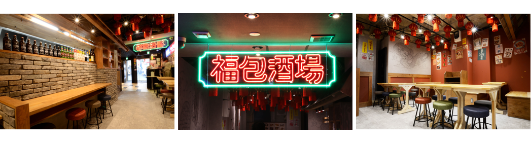 「カラオケの鉄人 新宿歌舞伎町一番街店」のフロア施設1F・B1F内に「福包酒場 新宿歌舞伎町店」を併設し、両店舗を当社が運営します。台湾の屋台を再現したようなこだわりの店内で、少人数から大人数のグループまで対応可能なお席もご用意しています。本格的な点心や中華料理をリーズナブルな価格でお楽しみください。