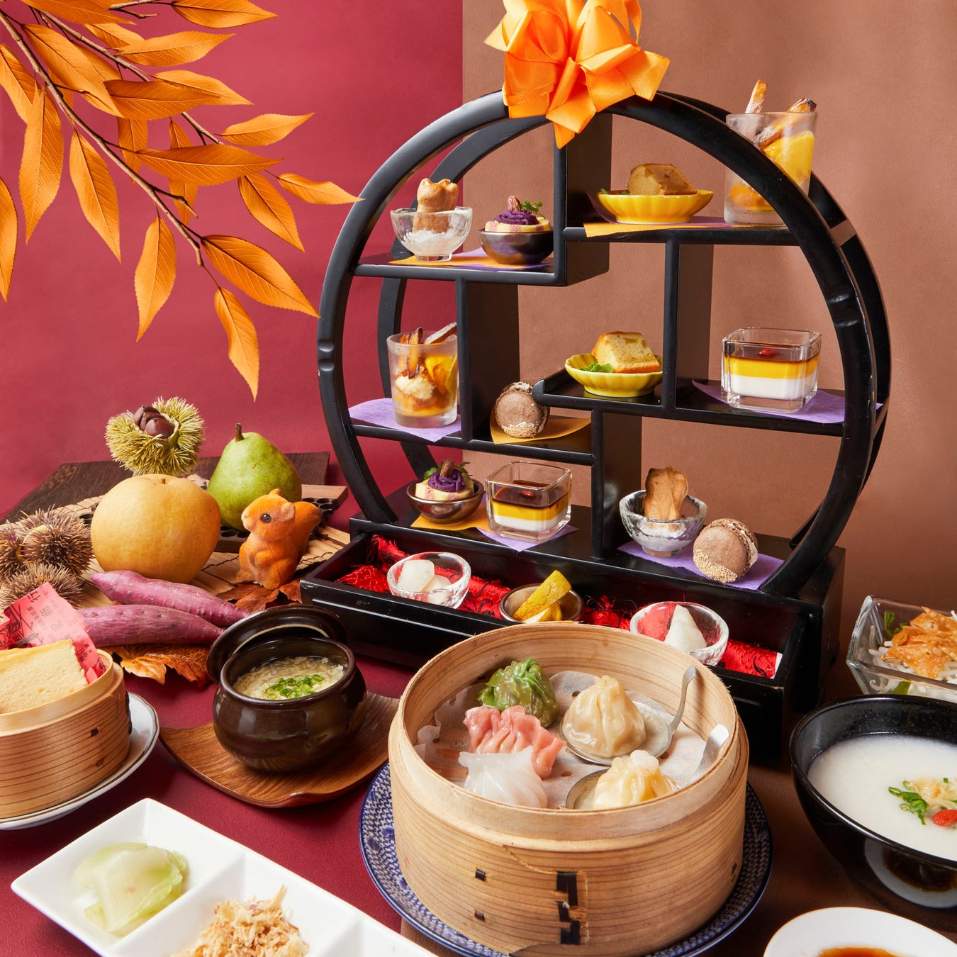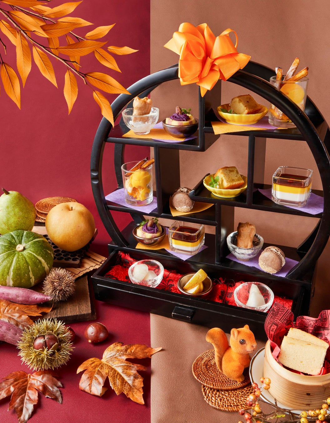 季節のサツマイモや栗・かぼちゃを使用した杏仁豆腐やマカロンなど秋の味覚の7種のスイーツが楽しめる。