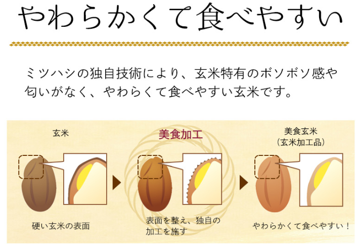 美食玄米とは・・・やわらかくて、たべやすい玄米です!