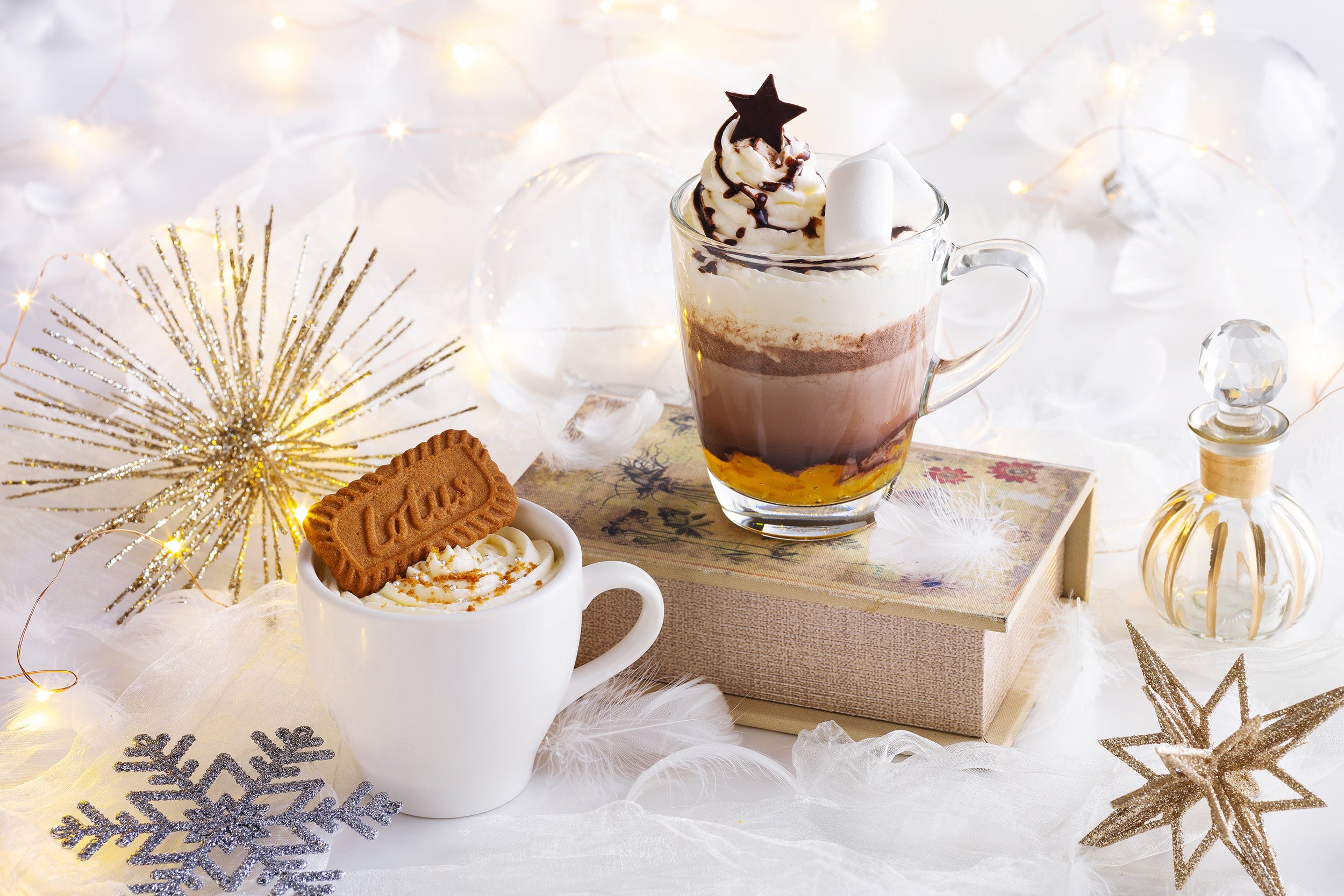 チョコレートの甘さとオレンジの酸味が相性抜群のドリンクです。ツリーをイメージした生クリームがポイントです。
