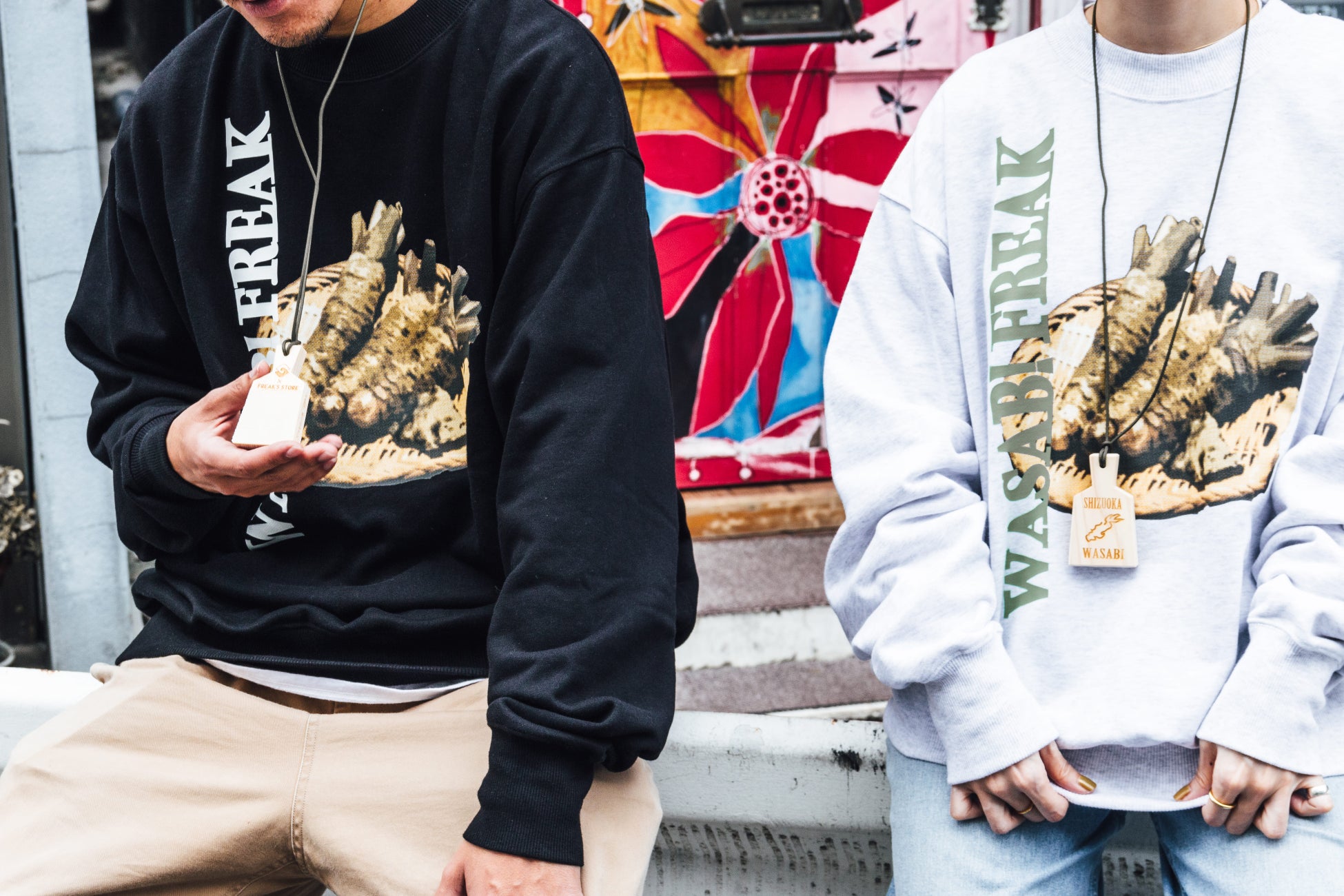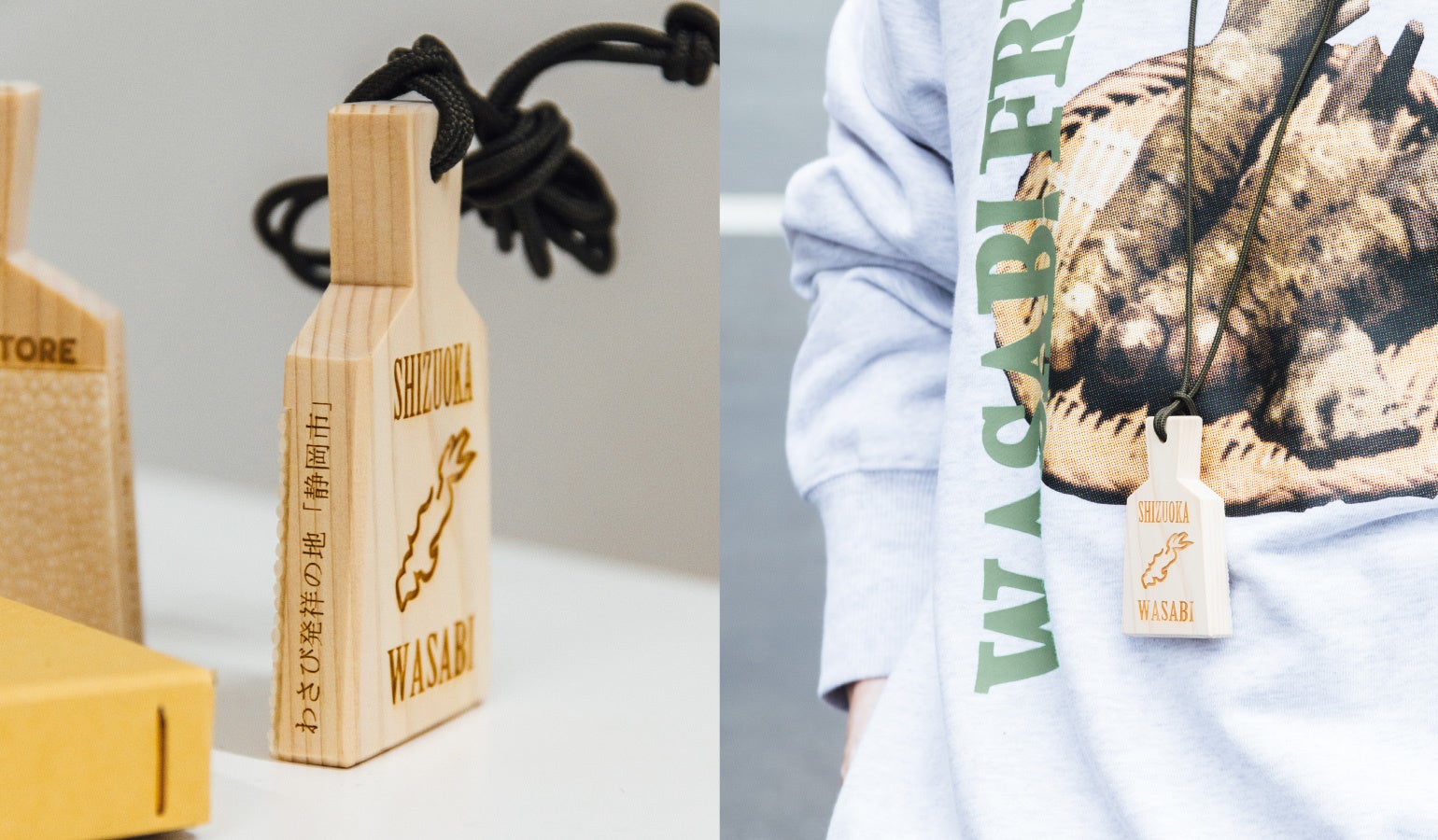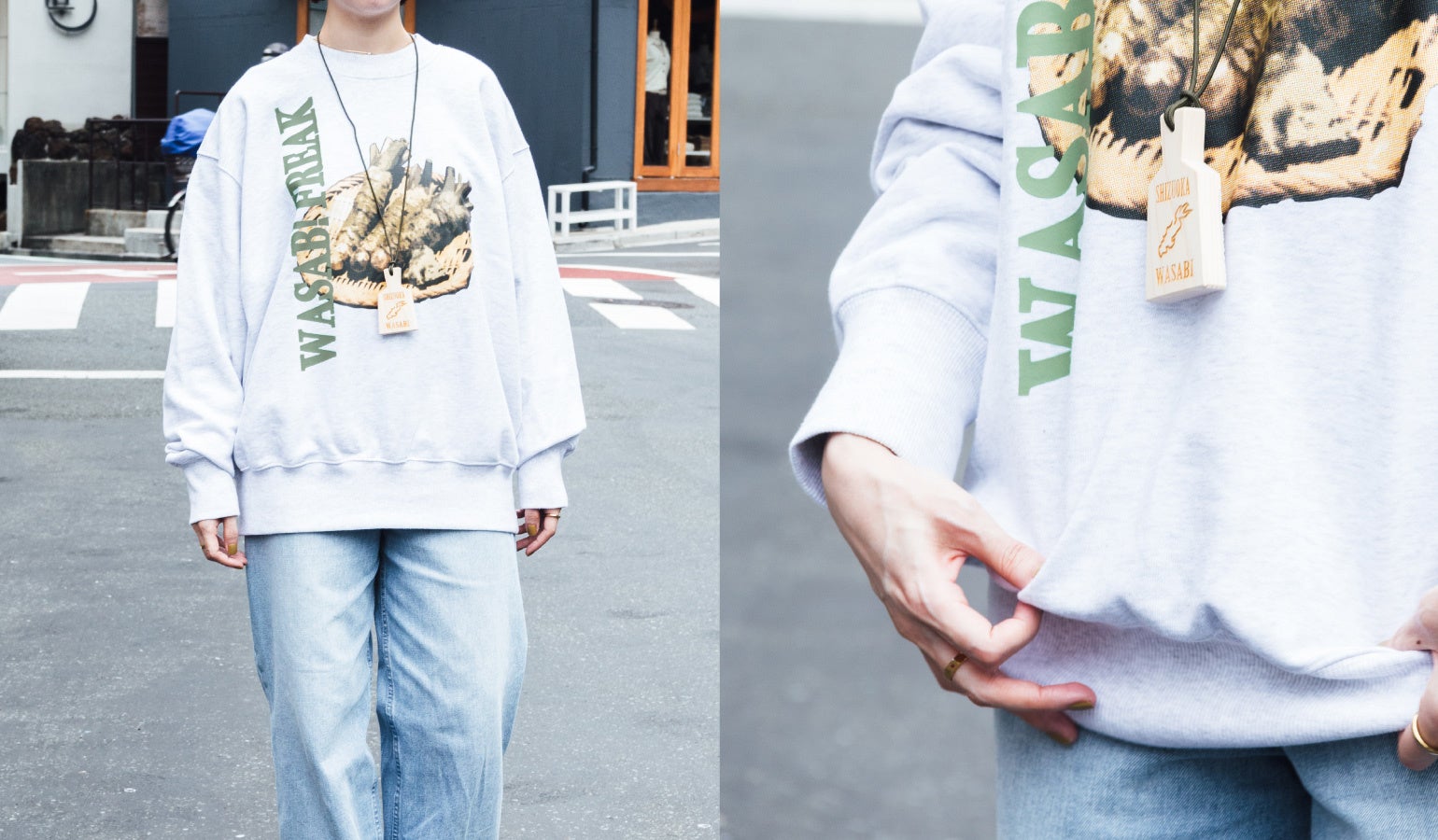 わさびの名産地であり、市として世界農業遺産に認定されているわさびを若者を中心に広めたいという想いから今回の取り組みがスタート。オフィシャルグッズはFREAK’S STOREらしいリラックス感のあるボディにわさびのイラストを落としこんだキャッチーなスウェットを販売するほか、首下げのアクセサリーとしても使用可能な特製わさびすりおろし器を製作し来場者にその場でお渡しする参加型キャンペーンも実施します。