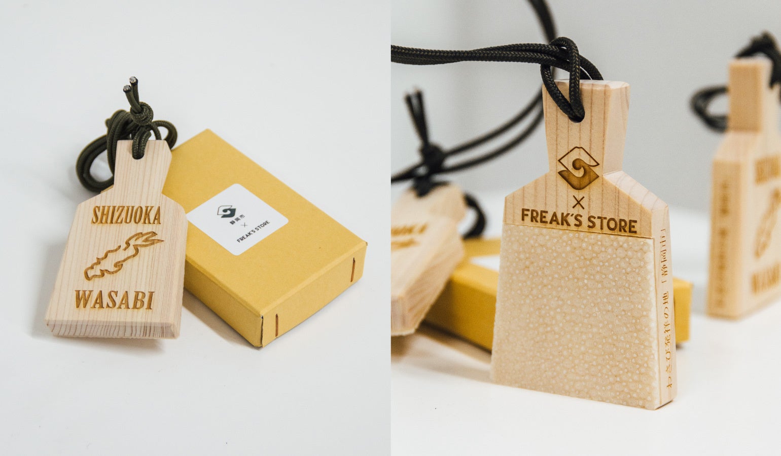 わさびの名産地であり、市として世界農業遺産に認定されているわさびを若者を中心に広めたいという想いから今回の取り組みがスタート。オフィシャルグッズはFREAK’S STOREらしいリラックス感のあるボディにわさびのイラストを落としこんだキャッチーなスウェットを販売するほか、首下げのアクセサリーとしても使用可能な特製わさびすりおろし器を製作し来場者にその場でお渡しする参加型キャンペーンも実施します。