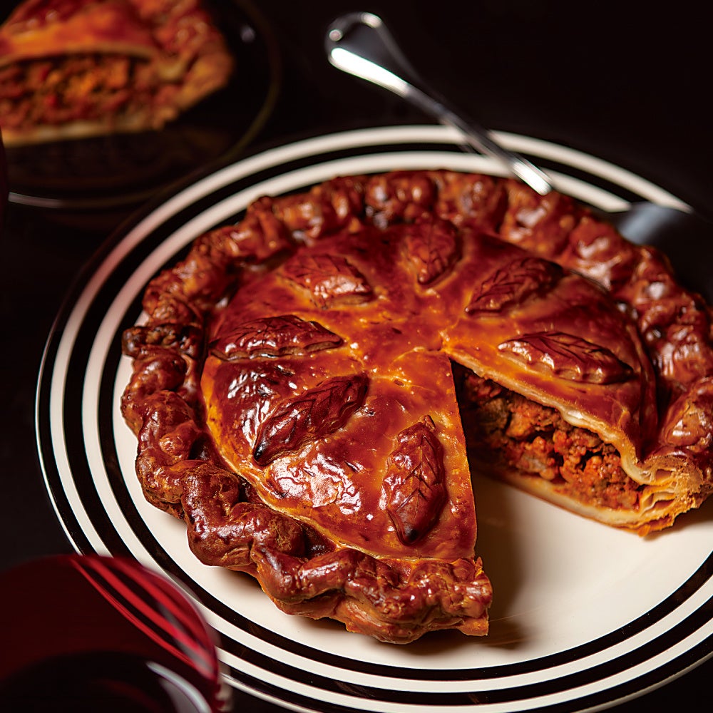 牛ひき肉、スパイスや香味野菜、ポルチーニ茸のうまみが凝縮したフィリングが詰まった自家製のミートパイは冬の間しか食べられない毎年人気の一品です。