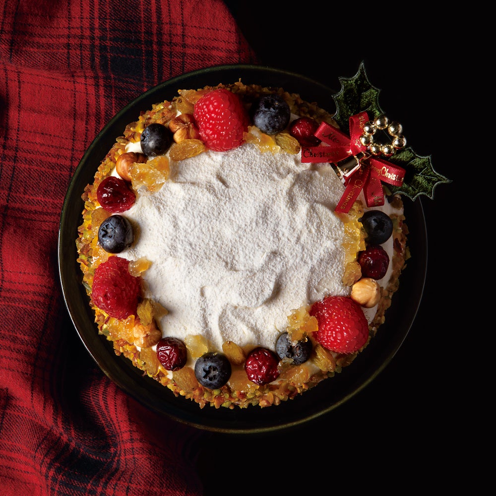 ふわっふわのスポンジと生クリームのバランスにこだわり抜いた王道のショートケーキがご予約限定で登場!ストロベリー、ラズベリー、ブルーベリーの3種のベリーとハート型クッキーがクリスマスの食卓を華やかに彩ります。