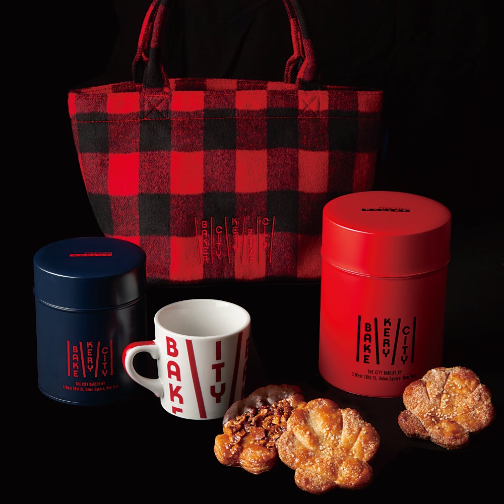 11月24日(金)からは、ホリデーシーズンに揃えたいこのシーズンだけのCBオリジナルグッズが登場!THE CITY BAKERY の代名詞プレッツェルクロワッサンをかたどった、可愛らしいフォルムが人気の「プレッツェルパイ」が詰まったキャニスターセットや、冬らしいウール調素材を使用した赤と黒の大きなチェックがポイントのミニトートバッグなど冬季限定カラーのグッズが盛り沢山!ギフトにもご自分へのご褒美にもぴったりな【冬季限定 CBオリジナルグッズ】は、お近くの店舗またはオンラインショップにてお求めください。