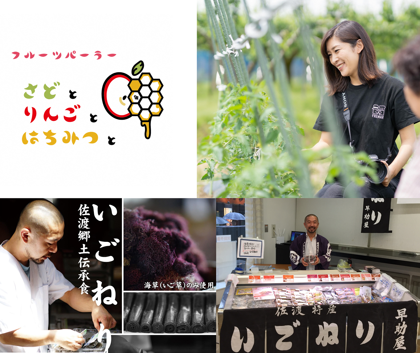 主な販売品:佐渡産りんご、おけさ柿、リンゴジュース、いごねり、ソーセージ、海産物加工品 等