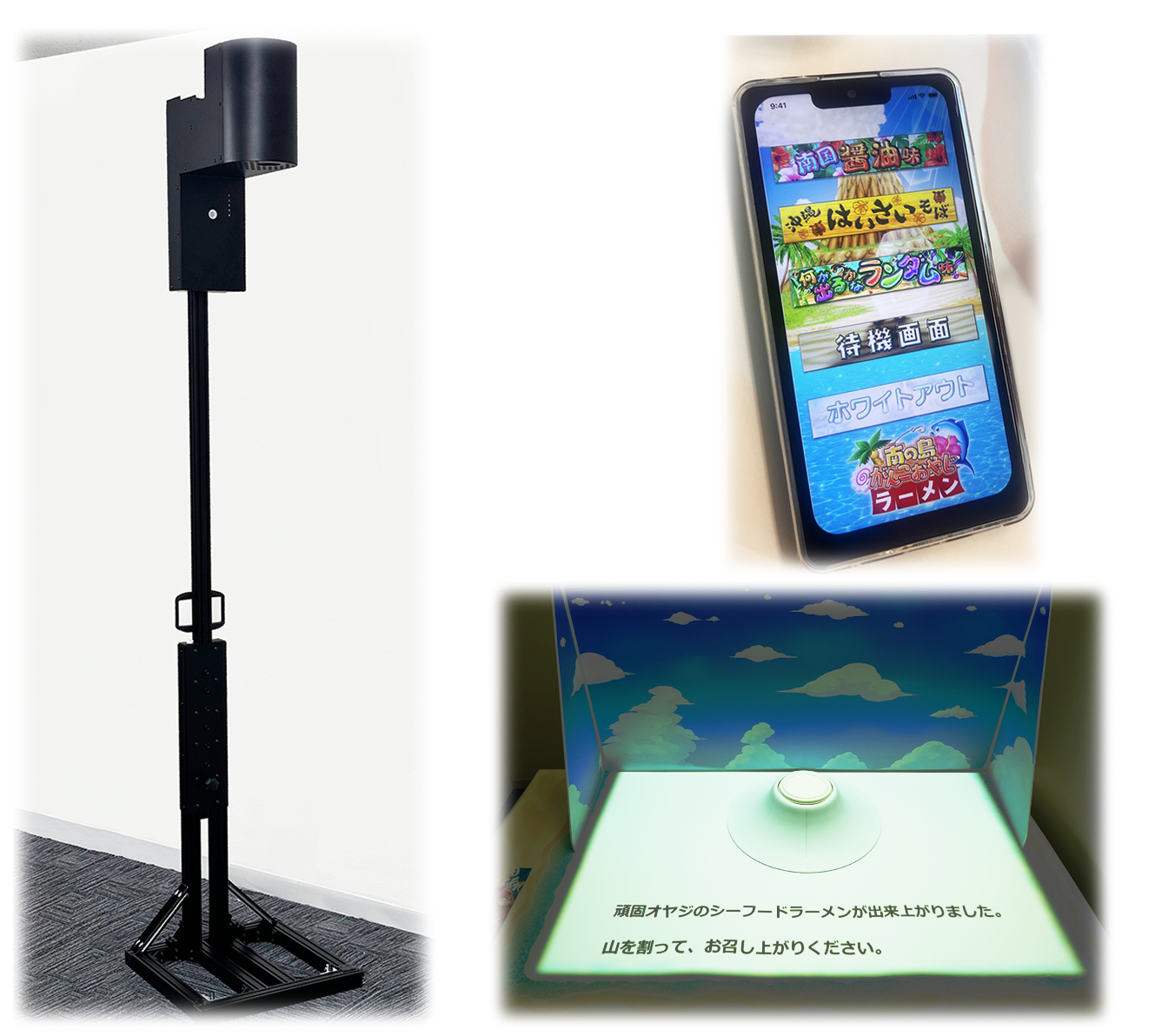 モビリティを高めた展示プロジェクターと造形物を一体とした映像、簡単操作のアプリを1体にしたテーブルの上でエンタメを体験させるメディアサービスとなります。