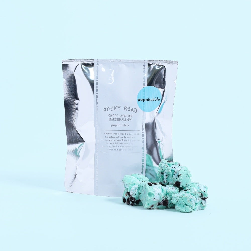 パパブブレ風にアレンジした伝統菓子“ロッキーロード”に、チョコミントロッキーロード「ペパーミント」が再登場します。ギフトやお土産にもぴったりの、9個入りとお手軽ミニサイズの2種。ペパーミントのもちもちとしたマシュマロに、ザクザク食感のブラックココアビスケットとチョコチップを組み合わせています。